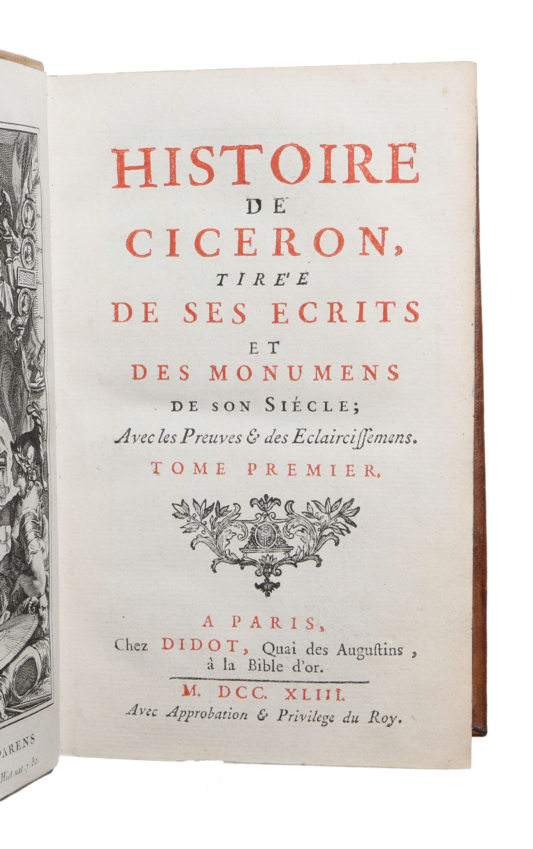 Histoire de Ciceron, tirée de ses écrits et des monumens de son siècle. Vol. 1 - 3 (out of 4) (+) Lettres de Ciceron a M. Brutus et de M. Brutus a Ciceron.