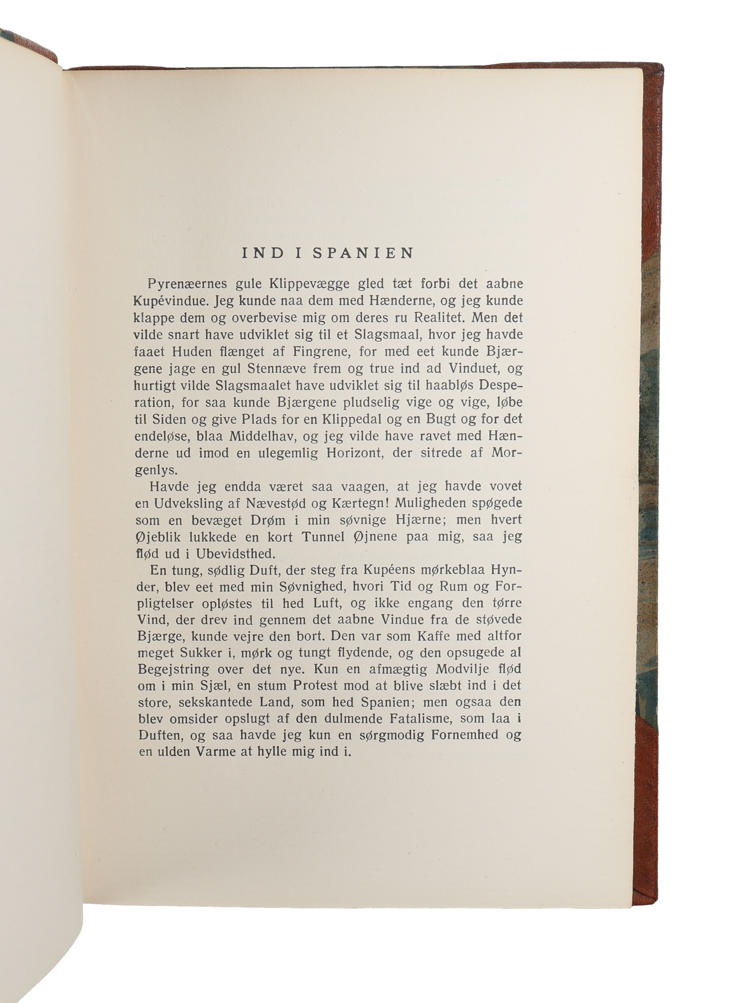 Originaludgaven, med dedikation fra forfatteren, af Kristensens rejsebilleder og skitser fra Spanien i 1920’erne. Turen til Spanien blev et kunstnerisk og eksistentielt pusterum for Tom Kristensen. For første gang i sit 32-årige liv stod han over for at være helt alene i en længere periode. Han håbede her han ville møde en stærkere og mere mandig udgave af sig selv, med roligere og fastere træk - nærværende dedikation tyder ikke på han til fulde opnåede dette.