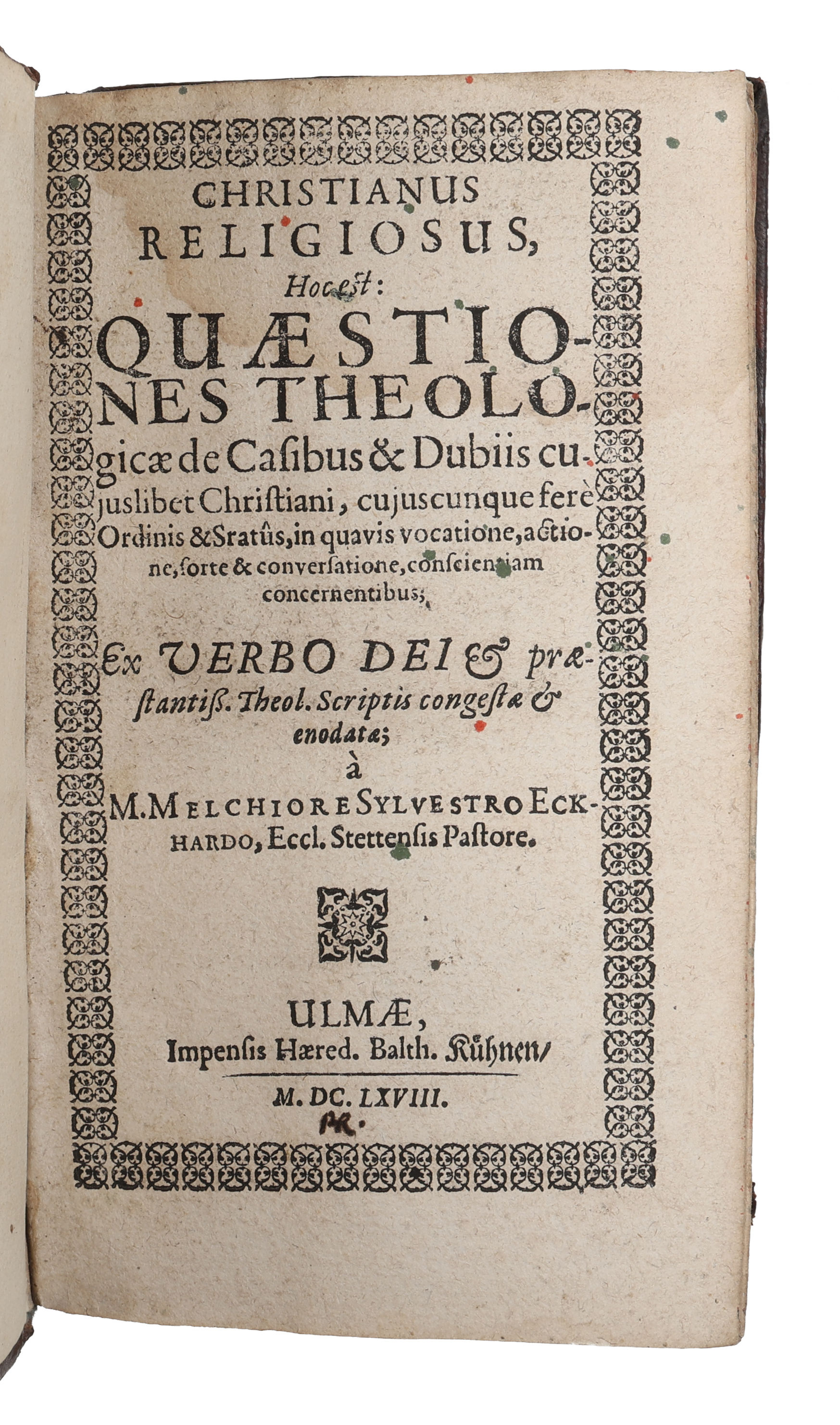 Uncommon later edition of Eckhard’s popular moral-theological treatise that presents a comprehensive view of what it means to live as a true Christian.