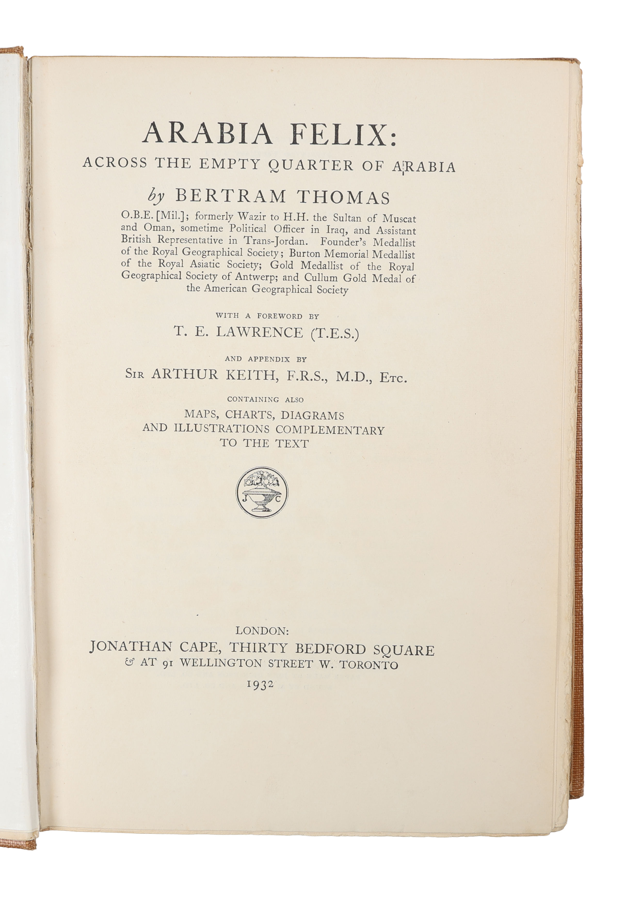London, Jonathan Cape, 1932. Large8vo. Uncut in publisher's original full cloth with gilt lettering to spine. Corner's bumped and inner front hinge loose, otherwise a nice and clean copy. (4), V-XXIX, (3), 396, (1) pp. + numerous black/white photos and 1 folded maps.