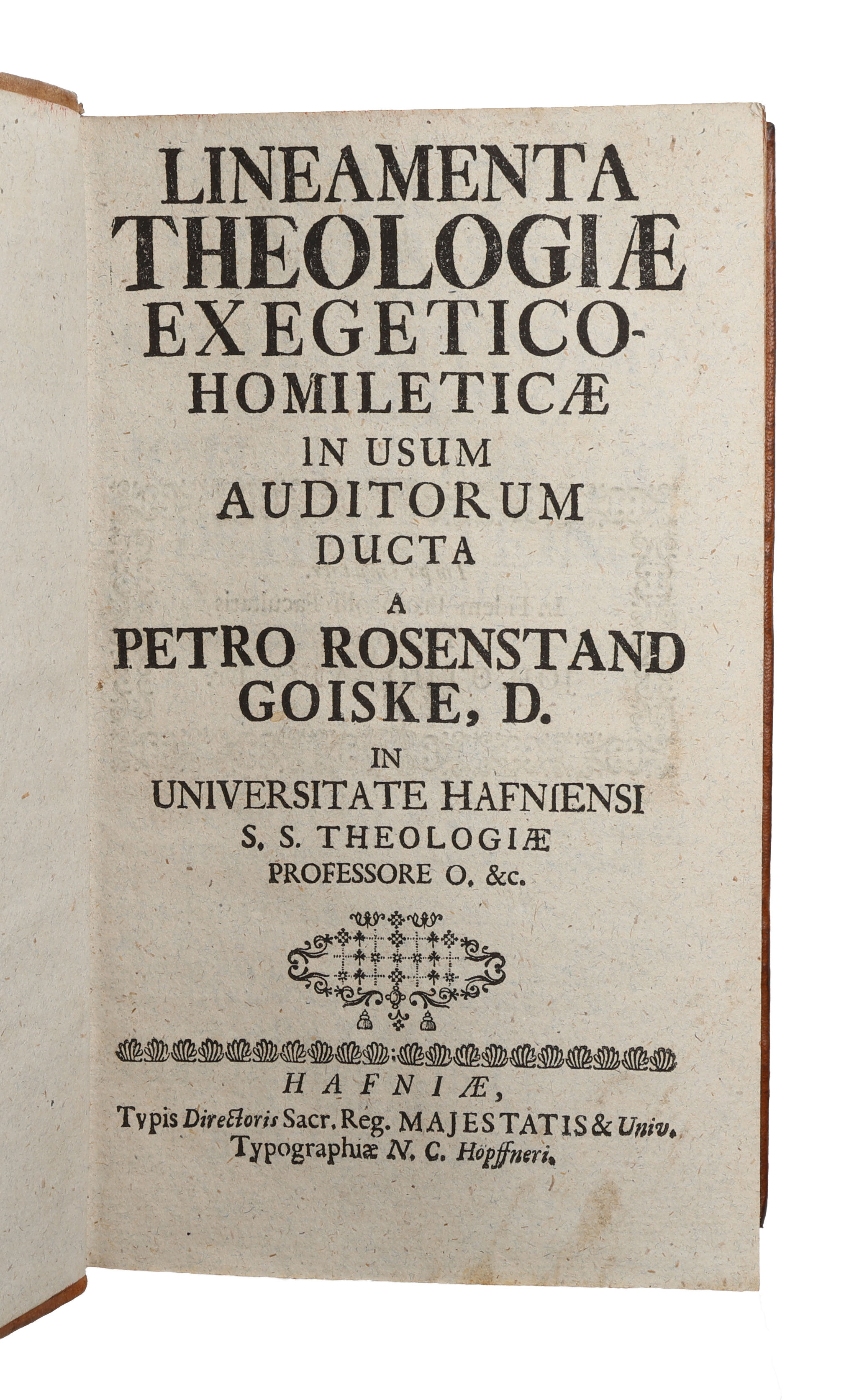 Hafnia (Copenhagen), Höpffner, (1759 - 1764) 8vo. In contemporary full calf with four raised bands and gilt lettering ad ornamentation to spine. Small paper-label pasted on to top of spine. A nice and clean copy. (16), 256 pp. A blank leaf bound in between each printed leaf.