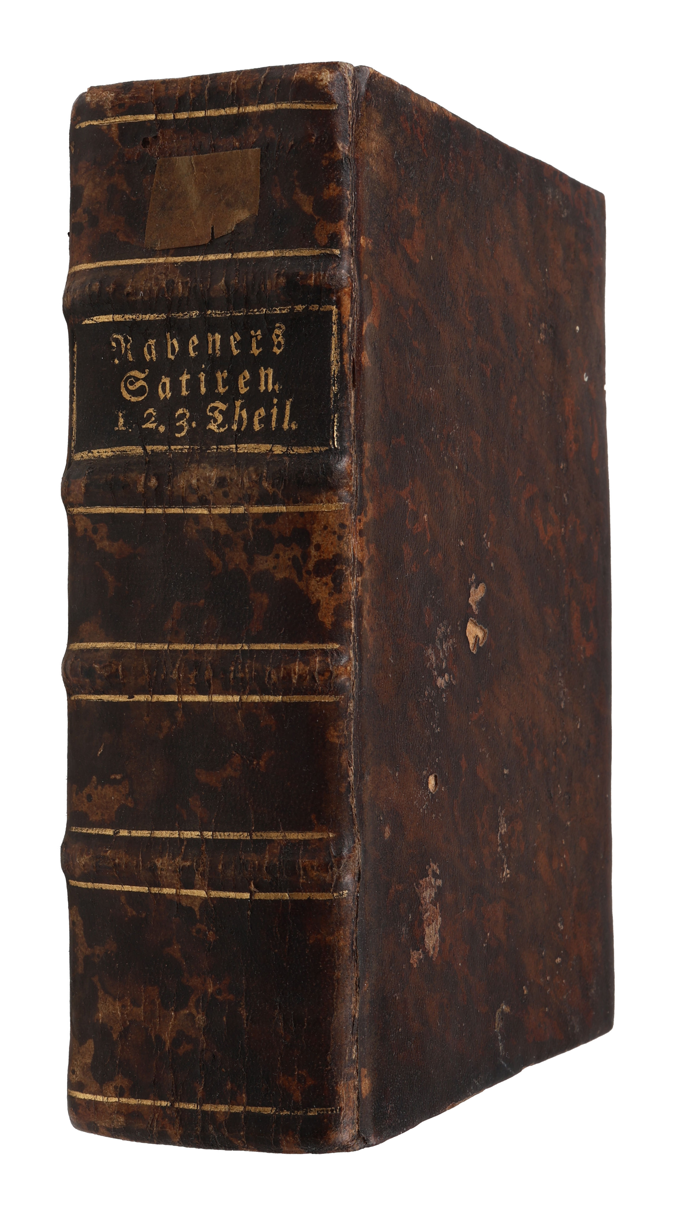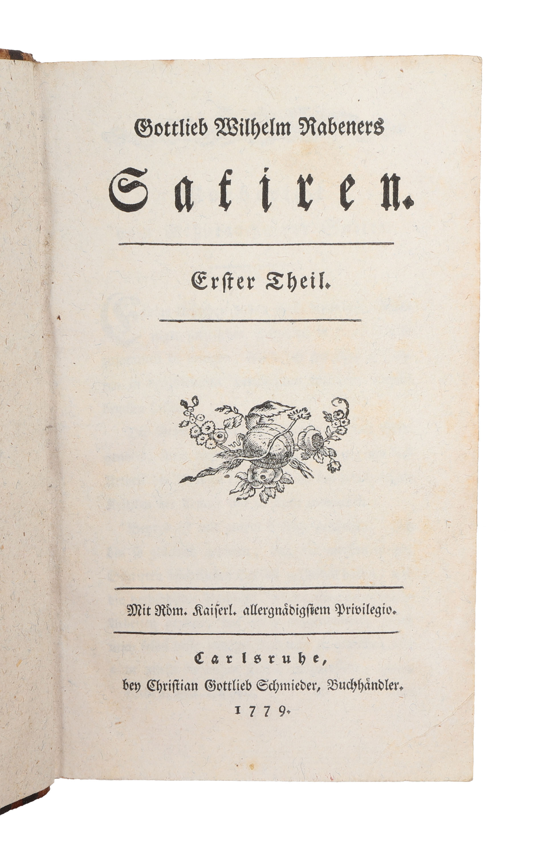 Carlsruhe, Schmieder, 1779. 8vo. Three parts bound in one contemporary full calf binding with four raised bands. Wear to extremities. Internally nice and clean. (2), 296, (18), 293, (15), 393, (7) pp.