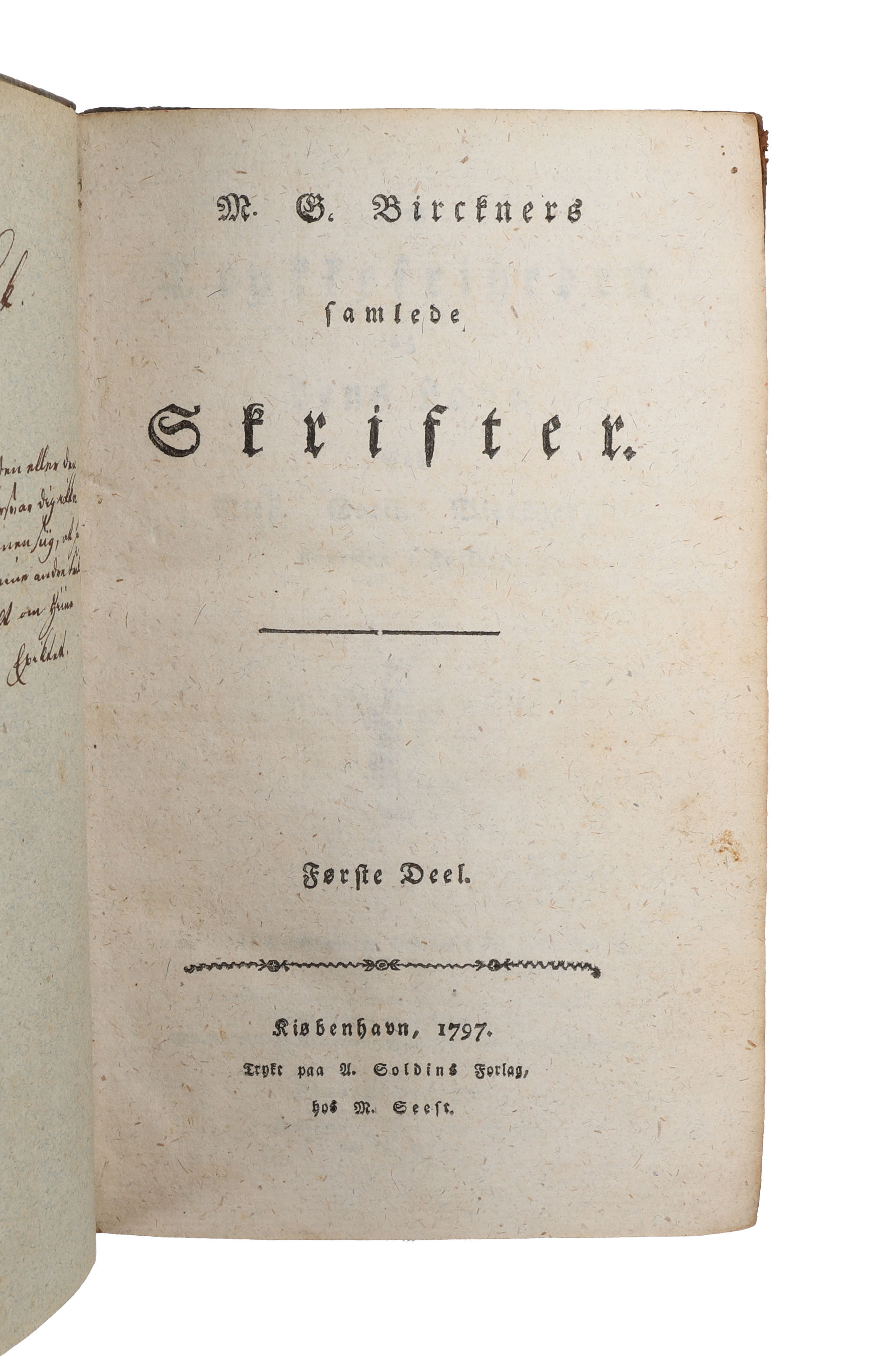 Også med titelbladet: "Samlede Skrifter Første Deel". - Bogen er et betydningsfuldt bidrag til trykkefrihedsdiskussionen i Danmar/Norge. Birckners politiske ideer var inspirerede af oplysningsfilosofferne Immanuel Kant og Jean-Jacques Rousseau og han argumenterer for, at affattelsen af frihedslovene bør være mere klare og præcise end i de tidligere udkast, da der ellers vil opstå usikkerheder, som domstolene derefter skal tage stilling til. - Bogen gav anledning til bred debat og blev trykt i flere oplag, endda udgivet på tysk. Værkets frihedstanker er aktuelle helt op i nutiden, f.eks. påviser Peter Germer i sin disputats Ytringsfrihedens Væsen (1973), at Birckner i sin bog foregreb den amerikanske ytringsfrihedsteori, mest nærliggende Alexander Meiklejohns tanker i hans værk Free Speech and Its Relation to Self-Government (1948). - Danica I:1064.