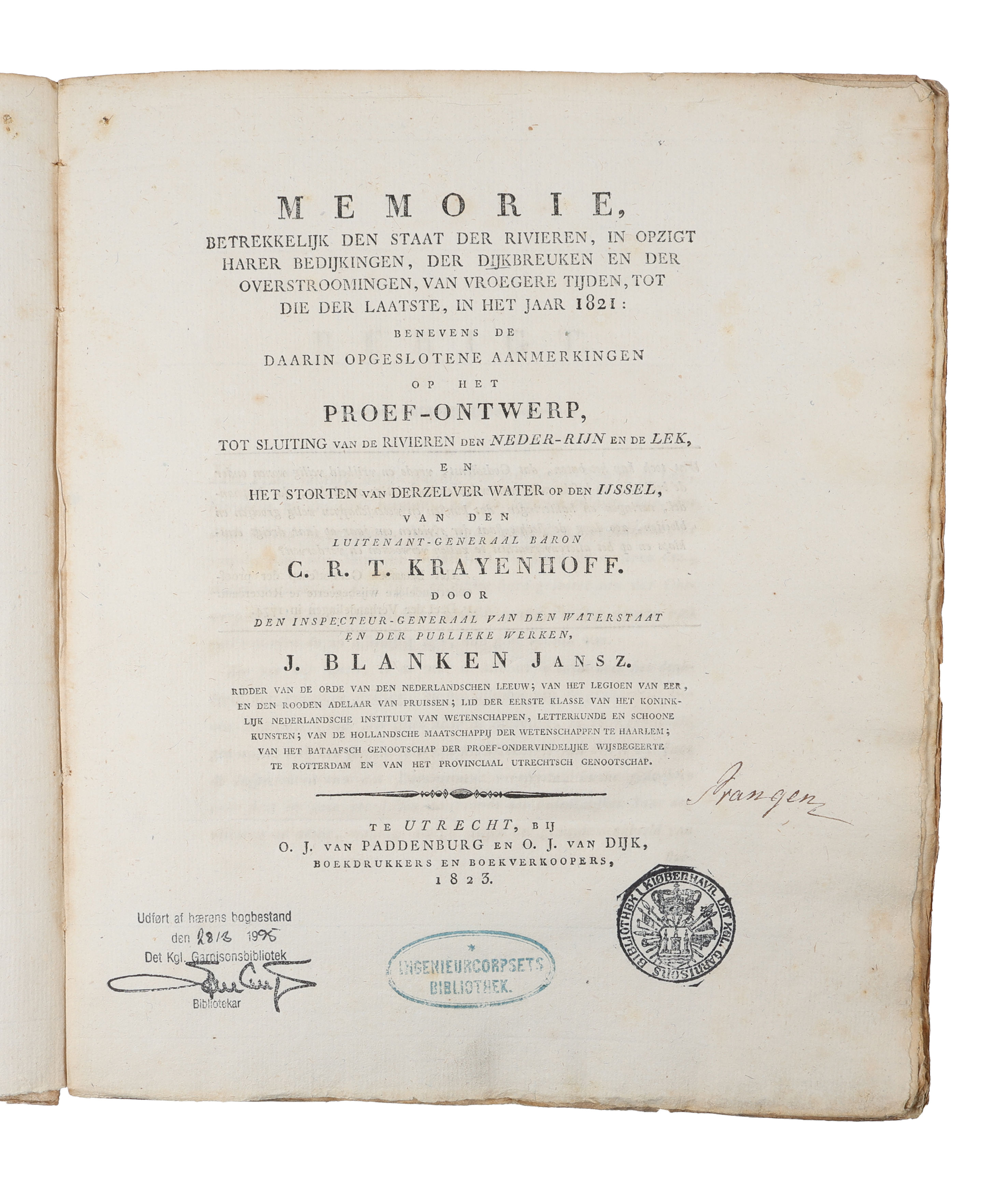 Memorie, betrekkelijk den staat der rivieren, in opzigt harer bedijkingen, der dijkbreuken en der overstroomingen, van vroegere tijden, tot die der laatste, in het jaar 1821 : benevens de daarin opgeslotene aanmerkingen op het: Proef-ontwerp, tot slui...