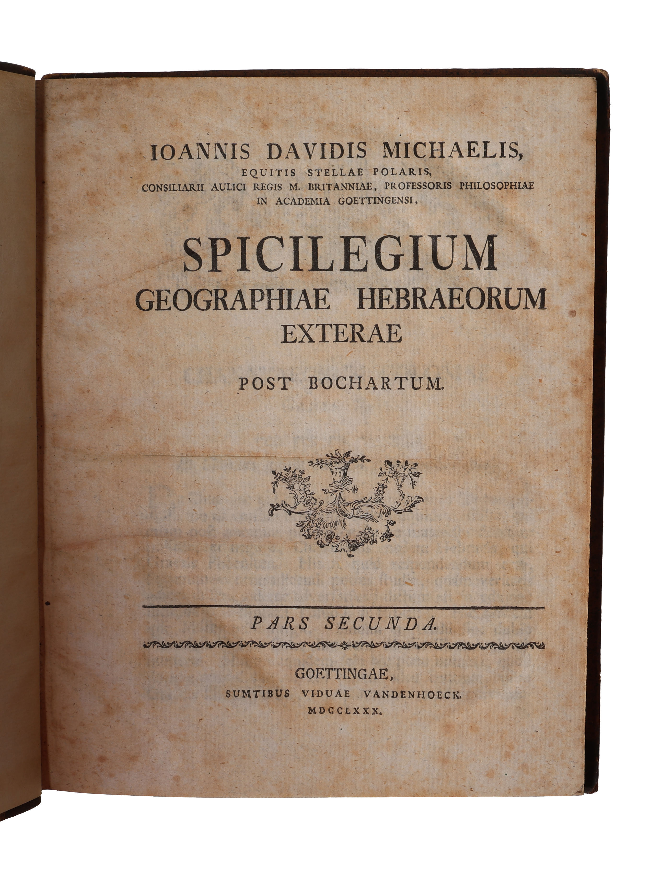 First edition of this important work which became highly influential in seventeenth-century Biblical exegesi. Johann Davis Michaelis (1717-19) was a theologian and orientalist, whose fame today rests upon the present work and upon the fact that he was responsible for the first scientific expedition to Arabia Felix, namely that of Niebuhr.