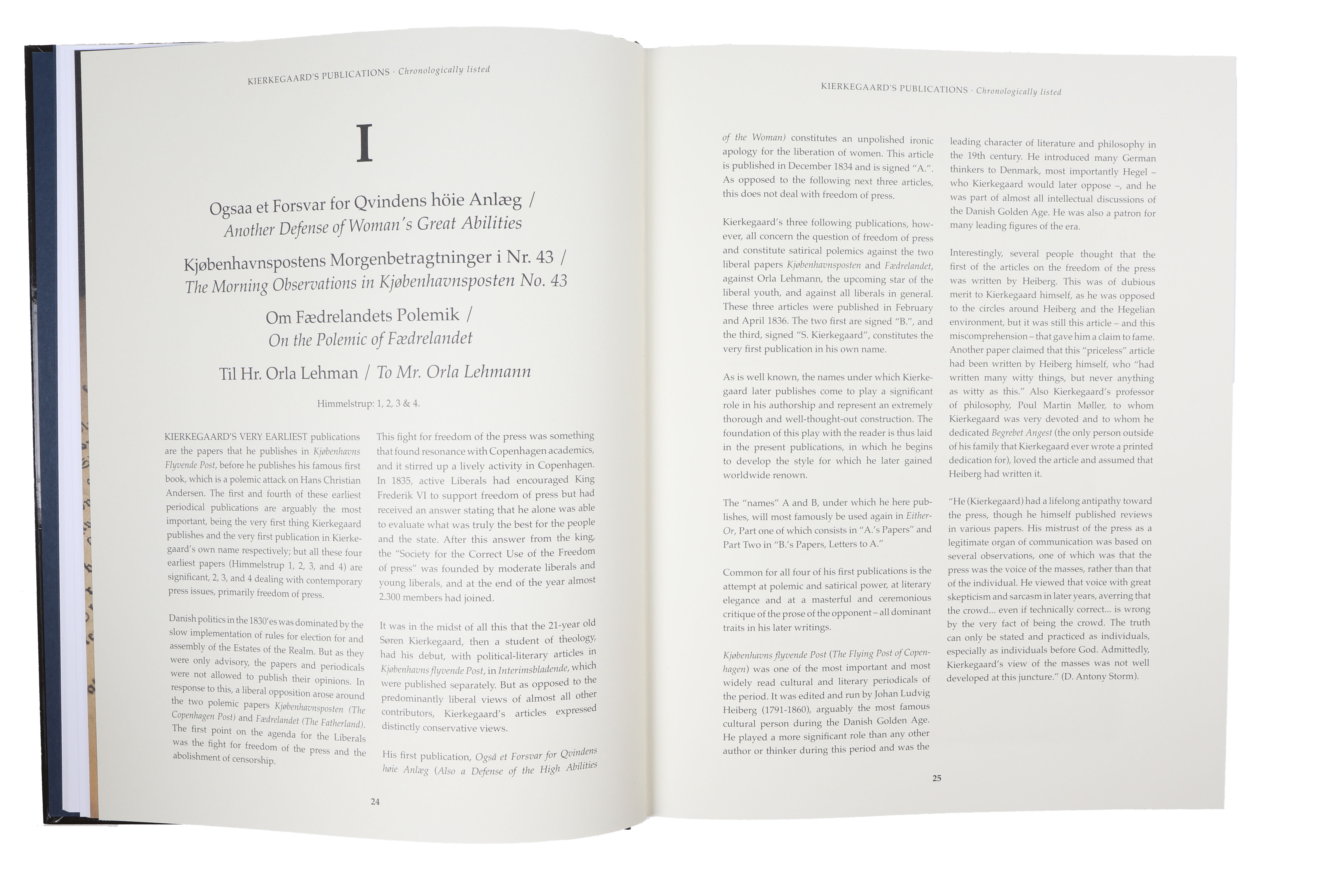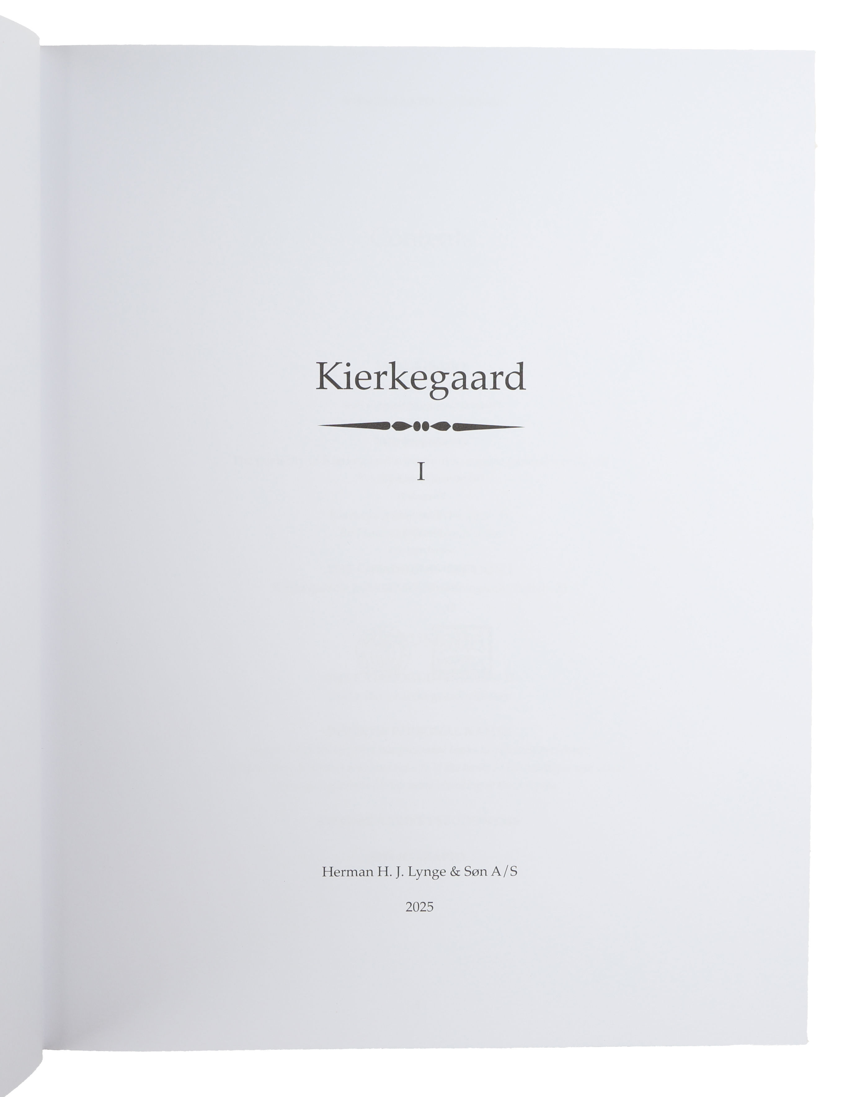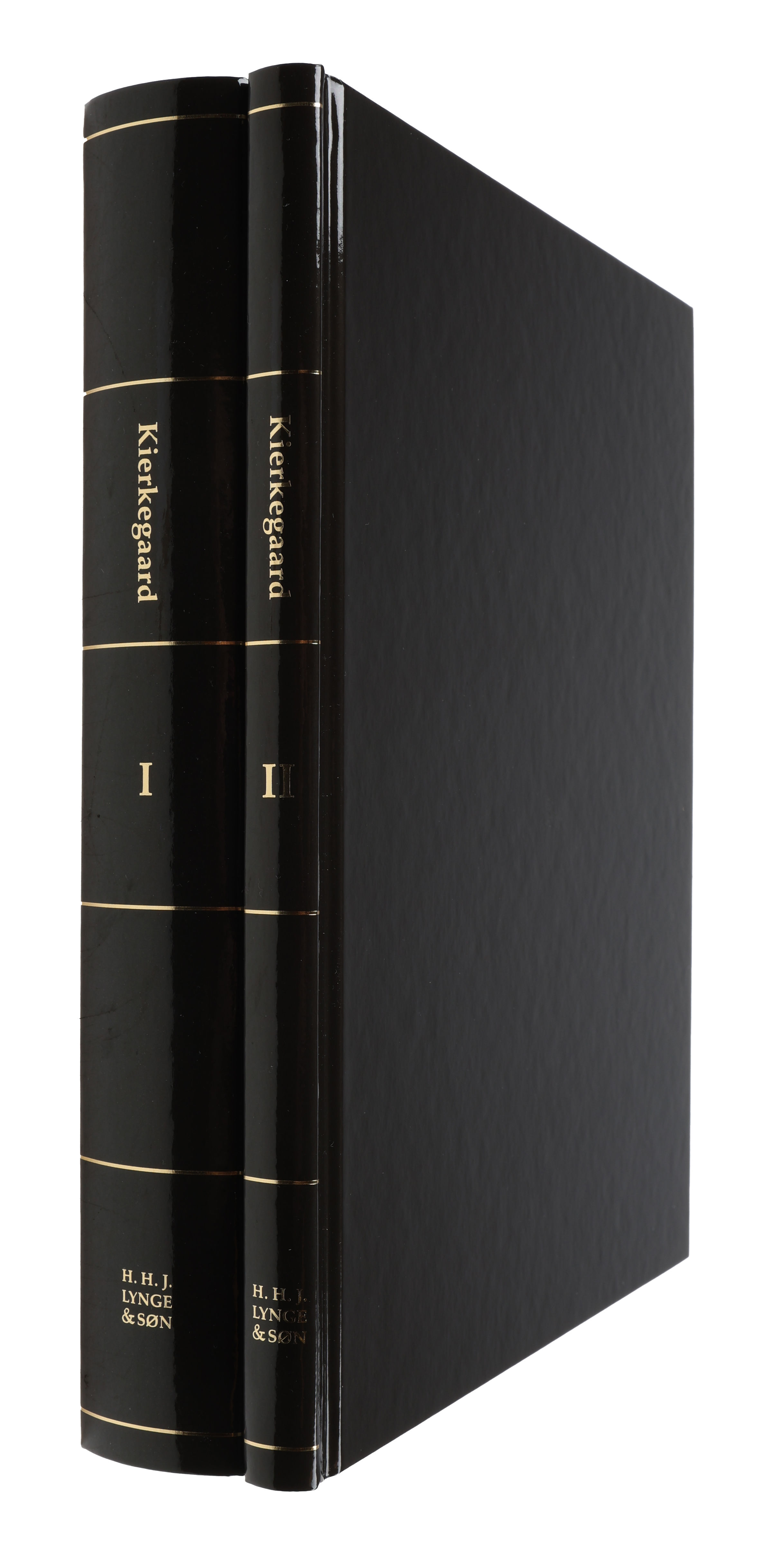 Herman H.J. Lynge & Søn, printed by Narayana Press, 2025. Large 4to (28 x 22 cm). Two volumes, in the original boards of black glitted paper with gilt lettering and single gilt lines to spines, in the style of Kierkegaard's original gift-bindings. Housed in the original black glitted slipcase with a frame of single gilt lines and gilt corner-pieces, also in pastiche-style. 445, 143 pp. + 4 pp. pricelist, loosely laid in at the end of vol. I. Richly illustrated throughout with excellent photos of each book. New, mint, and in the original plastic wrapper.