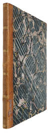Bruxelles, Hauman et Cie, 1841. 8vo. In contemporary half calf with gilt lettering and ornamentation to spine. Wear to extremities, boards with scratches and head of spine chipped. Internally nice and clean. (4), 214 pp. + 1 frontispiece, 1 folded map of Russia and 1 folded coloured map of Saint Petersburg. Exceedingly rare first edition of Alexandre Ferrier guidebook on Russia containing customs regulations (what may be imported into Russia), timetables for steamships from Le Havre and Lübeck, advice on how and where best to exchange foreign currency for Russian banknotes (preferably Dutch guilders), a list of ancient manuscripts held in the Public Library, and a wealth of other details on a wide range of aspects of public and private life. The author Alexandre Ferrier (1810–?), writer and member of the French Statistical Society and the Parisian Geographical Society, traveled through Russia in 1840.