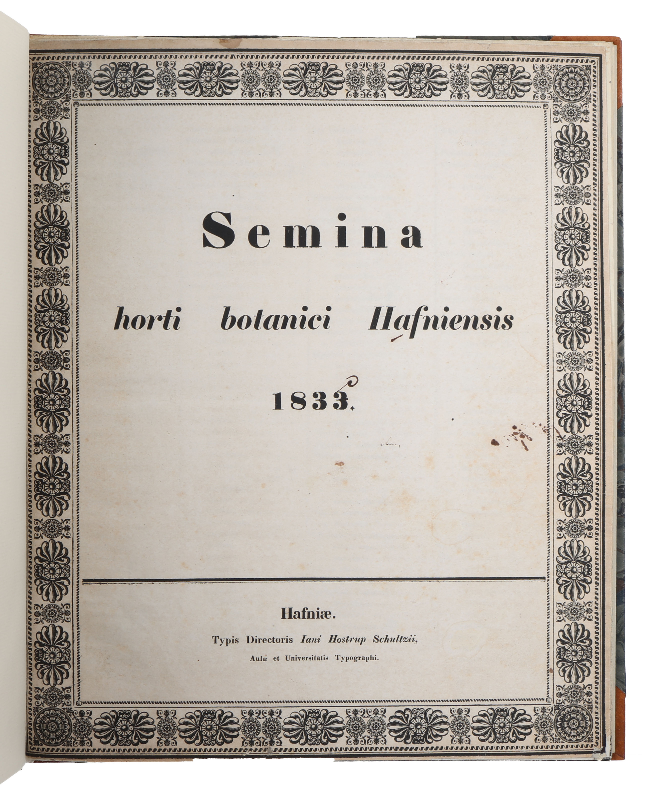 Rare seed catalogue issued by the Botanical Garden of the University of Copenhagen - These kinds of publications - common among botanical gardens in the 18th and 19th centuries - served to list seeds available for exchange with other gardens and scientific institutions across Europe and beyond. Printed in low number and intended for use only between European botanical gardens these catalogues rarely find their way to the trade.