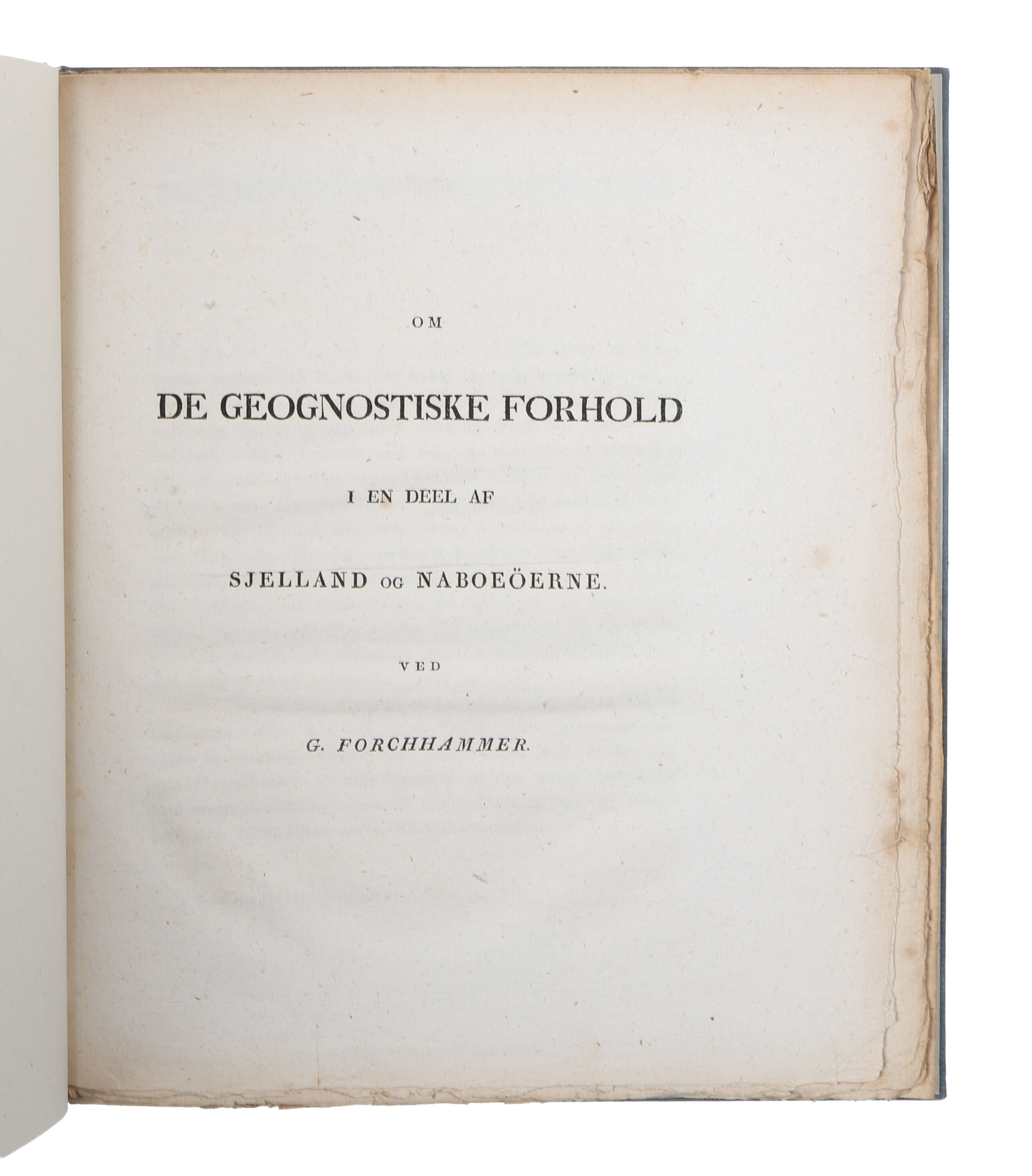 Originaltrykket. Heri Forchhammers teori om kridtdannelserne på Stevns og Møn, som gav anledning til megen inden-og udenlandsk debat.