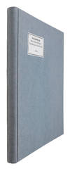 Kjøbenhavn, Reitzel, 1844. 8vo. (8), 184 pp. Bound in a black glitted full paper binding mimicking Kierkegaard’s gift-bindings. With Gothic gilt lettering and printing year to spine. Top edge gilt, otherwise uncut. Bound by Anker Kyster’s Eftf. 1958, more specifically Bent Andree, with his name in pencil under the book-binder stamp on front free end-paper. A bit of wear to extremities. One leaf loose. The copy is a most curious one. It was been washed and restored and then bound by one of Denmarks’ best bookbinders of all time, clearly under specific instructions to both keep it original, but to also reflect the typical bindings Kierkegaard had made. The copy is on fine, bright white vellum-paper (!), uncut, and bound with the original back-strip with the original printed title-label, preserving all of the printed text and with blank blue wrappers of the exact same paper as the back-strip. To our knowledge, The Concept of Anxiety did not appear in blue blank wrappers. It did, however, appear in the characteristic blue paper binding. The wrappers here bound in, however, do not match this paper exactly. A unique copy of the scarce first edition of this classic of Existentialism, being the only known copy printed on fine paper. The Concept of Anxiety is one of Kierkgaard's greatest works, his primary psychological work, and the work with which "Angst" is introduced in philosophy. It is futhermore (together with Sixteen Unbuilding Discourses - the amputated Eighteen Upbuilding Discourses), the rarest of Kierkegaard's works, at is was printed in half as many copies as his other works. Not a single presentation-copy of the work is known to exist, no copy on special paper has been registered (before this), and merely a single copy of the work is listed in the auction catalogue of Kierkegaard’s books sold after he died (the whereabouts of this copy unknown). This could possibly be the hitherto unlocated copy from Kierkegaard’s own collection. Or it could be a copy he gave away, the only one to have ever surfaced. It is undoubtedly one or the other, seeing that it is on special vellumpaper, on which Kierkegard only had copies made for himself, for presentation, or for Regine.There could be several explanations for the mystery of the bound in wrappers: 1) they are new wrappers made to match the original spine with the original printed title-label; 2) they are the original blue paper taken off the original cardboard-boards in order to bind them in a binding that mimics a Kierkegaardpresentation-binding; 3) they are unknown original wrappers, not previously registered for The Concept of Anxiety. It is this classic of Existentialism that introduced the notion of “Angst” (anxiety) in philosophy. If Kierkegaard had written nothing else, The Concept of Anxiety alone would have cemented him as one of the most important thinkers since antiquity. Nowhere else can one find an account of the concept of anxiety that comes close in importance to the one Kierkegaard gives in the present work. Using the Fall in the Garden of Eden as the foundation of the analysis, he succeeds in describing what no-one has been able to before or since. “Long before modern psychology had entered puberty, Kierkegaard unfurled advanced psychological concepts that in many senses were Freudian before Freud was around. In his primary psychological work, The Concept of Anxiety, he presents his detailed analyses of the relationship of anxiety to phenomena such as freedom, sexuality, original sin, and history.” (The Søren Kierkegaard Research Centre). Being one of his most important and influential philosophical works, The Concept of Anxiety is essential to all later existentialist writers. It was arguably this work that more than any other influenced Existentialism. The work bears a printed dedication to his beloved Poul Martin Møller, one of the most beautiful and moving dedications in a philosophical work. Poul Martin Møller was his philosophy professor, but more than that he was a moral mentor and one of a few people that Kierkegaard truly admired and cared for. Poul Martin Møller died in 1838, leaving almost no published works behind; he is the only person outside of Kierkegaard’s immediate family (here including Regine), who had been honoured with a printed dedication in any of his books. Apart from the title Sixteen Upbuilding Discourses (the amputated Eighteen Upbuilding Discourses – without the two that were quickly sold out), The Concept of Anxiety is by far the scarcest of Kierkegaard’s works – “The Concept of Anxiety was only printed in 250 copies!” (Textspejle, p. 58, translated from Danish), which is ca half of most of the other works. It is, interestingly, the only one of the pseudonymous writings from the period that was reprinted, despite the poor sales numbers of the first issue. In the summer of 1847, when Reitzel buys the remainders of the first issue, a mere 165 copies of what is arguably now considered Kierkegaard’s most important work had been sold. The Concept of Anxiety is not only notorious for its pivotal importance in the history of philosophy and for essentially being the theoretical foundation of Existentialism; among Kierkegaard collectors and bibliophiles in general, it is also notorious for its scarcity, having been printed in a mere ca 250 copies. Furthermore, like Fear and Trembling, not a single presentation-copy of the work is known to exist, nor had any copy printed on special paper ever been discovered (until now). A single copy of the work is listed in the auction catalogue of Kierkegaard’s books sold after he died. But the whereabouts of this copy is unknown (possibly until now). Himmelstrup 62.