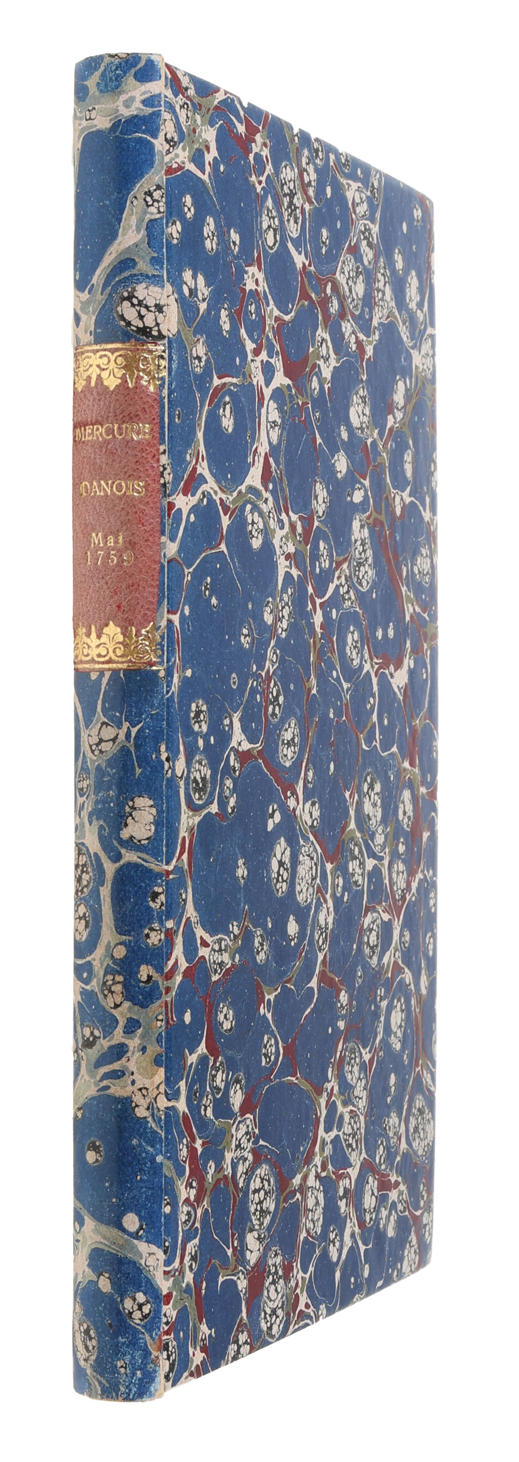 Copenhague, 1759. 8vo. Bound in nice recent marbled paper covered boards with leather title-label to spine. Title-page with stamp and extensive repairs to outer margin, not affecting text. First 7 ff. with repairs in margin, occassionally touching text. Leaf A8 with extensive repairs. 111, (1) pp.