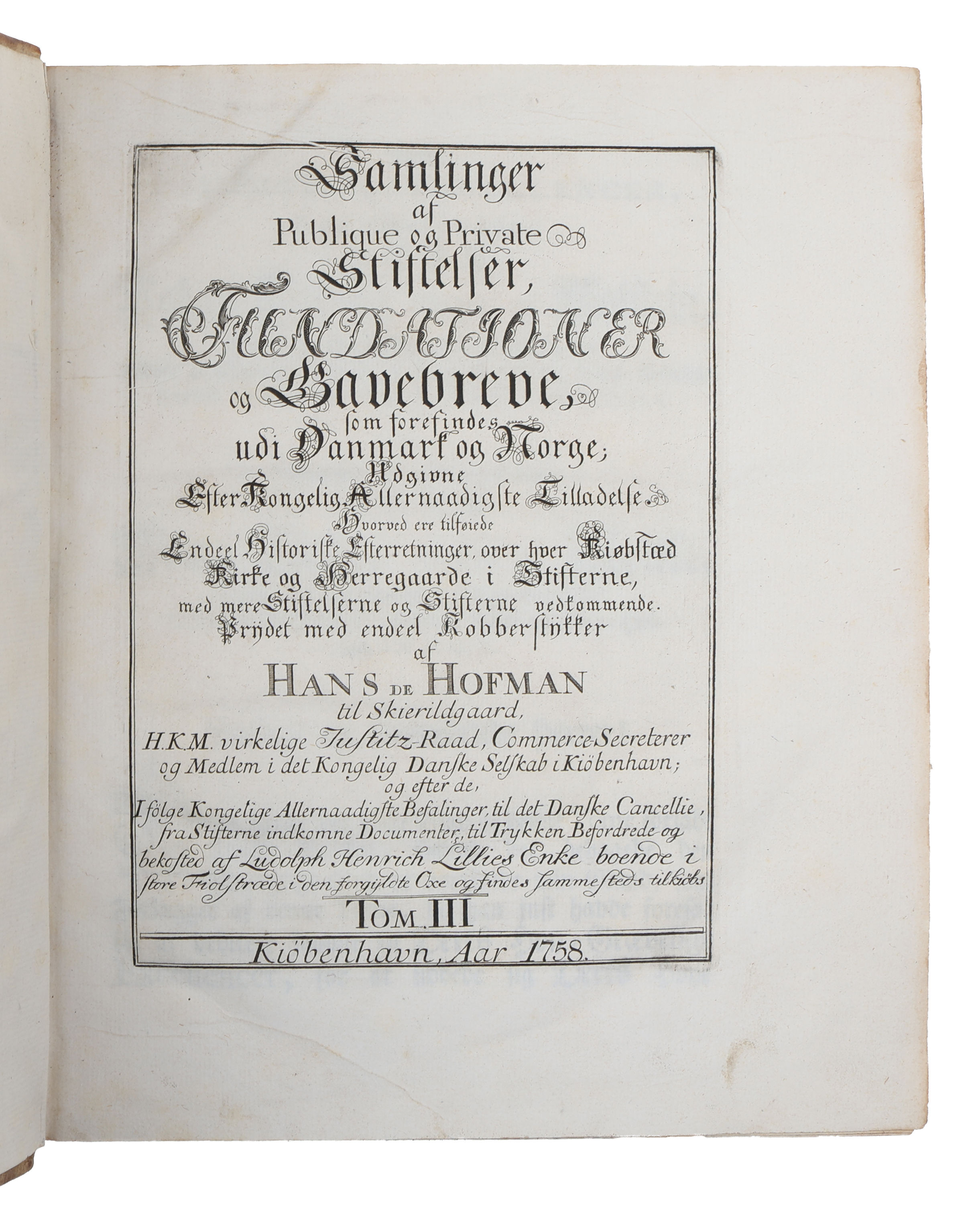 A nice copy of volume two of Hans de Hofman’s valuable work, containing a wealth of Danish-Norwegian genealogical source material.