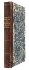 Kjøbenhavn, C. A. Reitzel, 1838. 8vo. X, (2), 79 pp. Lovely contemporary brown half calf with marbled paper over boards. Double gilt lines and gilt lettering to spine. Foot of spine with the gilt initials of H.P. Kierkegaard. A few brown spots to the margin of the first eight leaves, otherwise remarkably clean. An excellent, beautifully preserved copy. With the ownership signature of H.P. Kierkegaard to front fly-leaf. An exquisite copy of the first edition of Kierkegaard's first work, which has belonged to Kierkegaard's disabled cousin, who was a great source of inspiration to Kierkegaard. The relationship between the two cousins was very touching, and they both benefitted greatly from the other. Søren drew inspiration from his cousin, who was lame and unable to walk, and he cared a great deal for him. Hans Peter was one of the very few who had a standing invitation to visit Søren. He felt that his cousin might lead a truer and more meaningful life than most other people, who do not face the same hardships. Hans Peter, on the other hand, was greatly comforted by his famous cousin and his edifying writings. Søren helped him feel that, in spite of his hardships, his life was not wasted – he helped him believe in God. All copies of Kierkegaard's works belonging to his cousin denote a special significance, but it is especially lovely to find H.P. Kierkegaard's copy of his cousin's very first book. Kierkegaard's famous first work sews the seeds of his future career and initiates his philosophical production. It is in this famous review of Hans Christian Andersen as an author of novels, with a particular focus on his Only a Fiddler that Kierkegaard – the then 25 year-old theology student known only in a small academic circle, for his wit and sharp intelligence – puts forth his devastating criticism of Hans Christian Andersen – then 33 years old and already widely famous, Denmark's other national hero and world-famous fairy tale-author. Even though the book is written as a polemic review, we already here witness Kierkegaard's introduction of his emphasis on authentic individual existence will continue throughout his entire production; as thus, From the Papers of one Still Living serves as a highly important introduction to Kierkegaard's philosophical-ethical production. Kierkegaard points out that Hans Christian Andersen has not yet found himself and therefore cannot be a good author. This emphasis on authenticity and on the necessary first stage of the epic becomes an introduction to Kierkegaard's famous theory of stages that he develops in his later works. He rejects the notion that environment is decisive in determining the fate of genius – the genius is a shaping subject, not a passive one formed by circumstances. Not one that needs to be nurtured and sheltered in order not to perish. The work was originally meant to be published as an article in the literary periodical Perseus, of which Johan Ludvig Heiberg was the editor. But the article grew too extensive, and the intended columns in the periodical were given to H.L. Martensen instead. Martensen's article took up 70 pages and was about the idea of Faust, which vexed Kierkegaard, who had wanted to write about that subject himself. Kierkegaard, Hans Peter (1815-62) is always referred to as Kierkegaard's cousin, also by Kierkegaard himself, but if one is to be precise, he was Søren's half-cousin. H.P. was the son of M.P. Kierkegaard's (Søren's father) cousin, M.A. Kierkegaard. H.P. was one of the few people Kierkegaard was personally very close to. As Søren writes in a letter to H.P. (SKS letter no. 27) "you are one of the exceptions". He cared a great deal for his cousin, who was disabled. He was lame, completely paralyzed on one side of the body, and unable to walk. Intellectually, however, he was gifted, and the two cousins grew very close. Søren saw in him a purity that he did not see in other people, an ability to lead a truer and more meaningful life than others, who did not have to suffer in the same way. Søren was also a great comfort to H.P, who read the works of his famous cousin with enthusiasm. He probably owned every single work Kierkegaard wrote, and he drew great comfort from several of them. As Brøchner recalls in his recollections about Kierkegaard (Erindringer om Søren Kierkegaard – no. 43), H.P. "read his cousin's writings with the greatest of interest, occasionally visited him in his home, and drew much spiritual awakening from these visits." Brøchner continues to recall how he once told Kierkegaard what a great impression one of his works, Opbyggelige Taler i forskjellig Aand, had made upon H.P. In the confessional discourse, Søren portrays a person, who due to his bodily disposition is unable to practice anything physically or outwardly, and goes on to beautifully describe how this person too is subject to the same ethical demands as everyone else and what particular form this life-assignment takes on for him. To this, Søren replied "yes! To him, that work is a blessing". And so it was. Reading his cousin's upbuilding works provided the disabled Hans Peter with the power to overpower gloomy thoughts about his life having no meaning. Søren gave him, not only through his writings, but also through his meetings and conversations with him, the feeling of being as important as everyone else, as those who were physically blessed. There is no doubt that Kierkegaard drew inspiration from his admirable cousin, who had to overcome so much. And there is no doubt that H.P. was close to Søren's heart. Apart from Boeson, H.P. was the only person who had a standing invitation. He writes how he admires H.P., who, reconciled with his fate, with patience and devotion solves a task that is just as great as the one everyone else has to solve, whether they do big business, build houses, write great books, etc. – "when all is heard, everything, after all, mainly comes down to fervor – and when all is forgott
