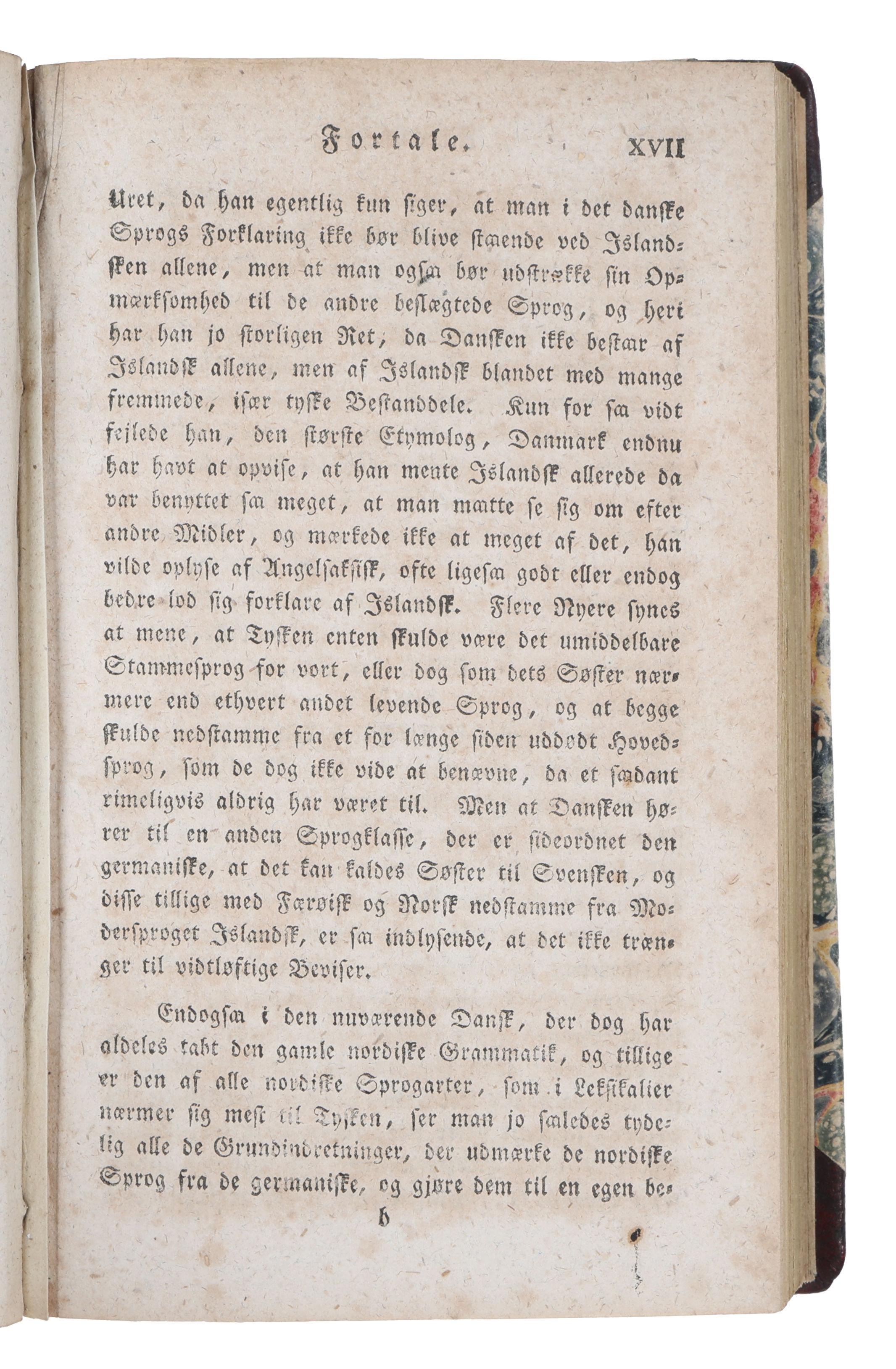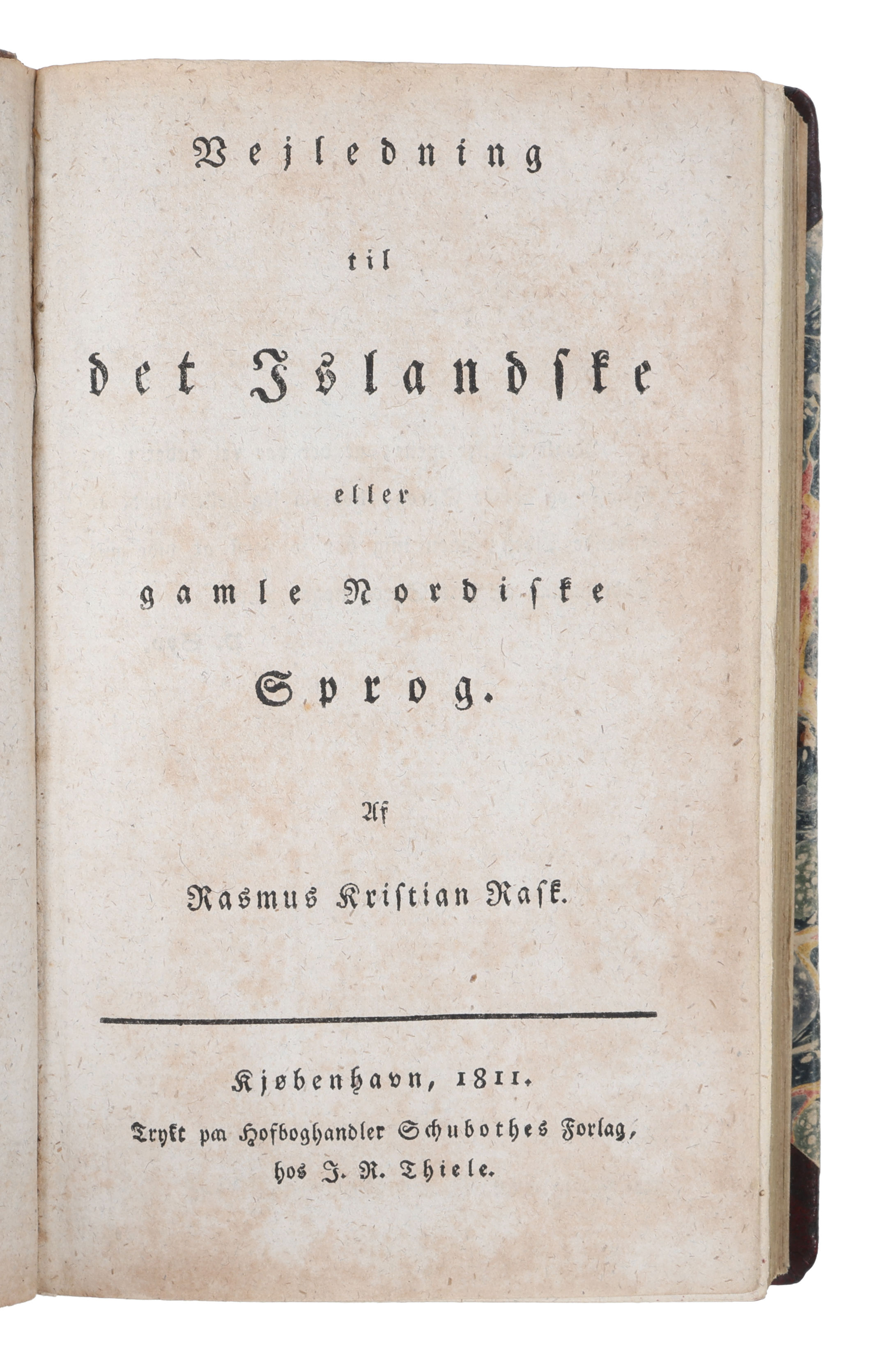 København, Schubothes Forlag - J.R. Thiele, 1811. 8vo. Bound in a slightly worn contemporary half calf binding with gilt spine. Gilt title to spine. Internally brownspotted. LVI,282,(6) pp. First edition of Rask's seminal first work, "the first of an important series of publications which qualify Rask as one of the founders of modern science of language." (PMM 266). The work constitutes the first thorough treatise of the Icelandic language. Hjelmslev I, 12 Fiske I, 482.