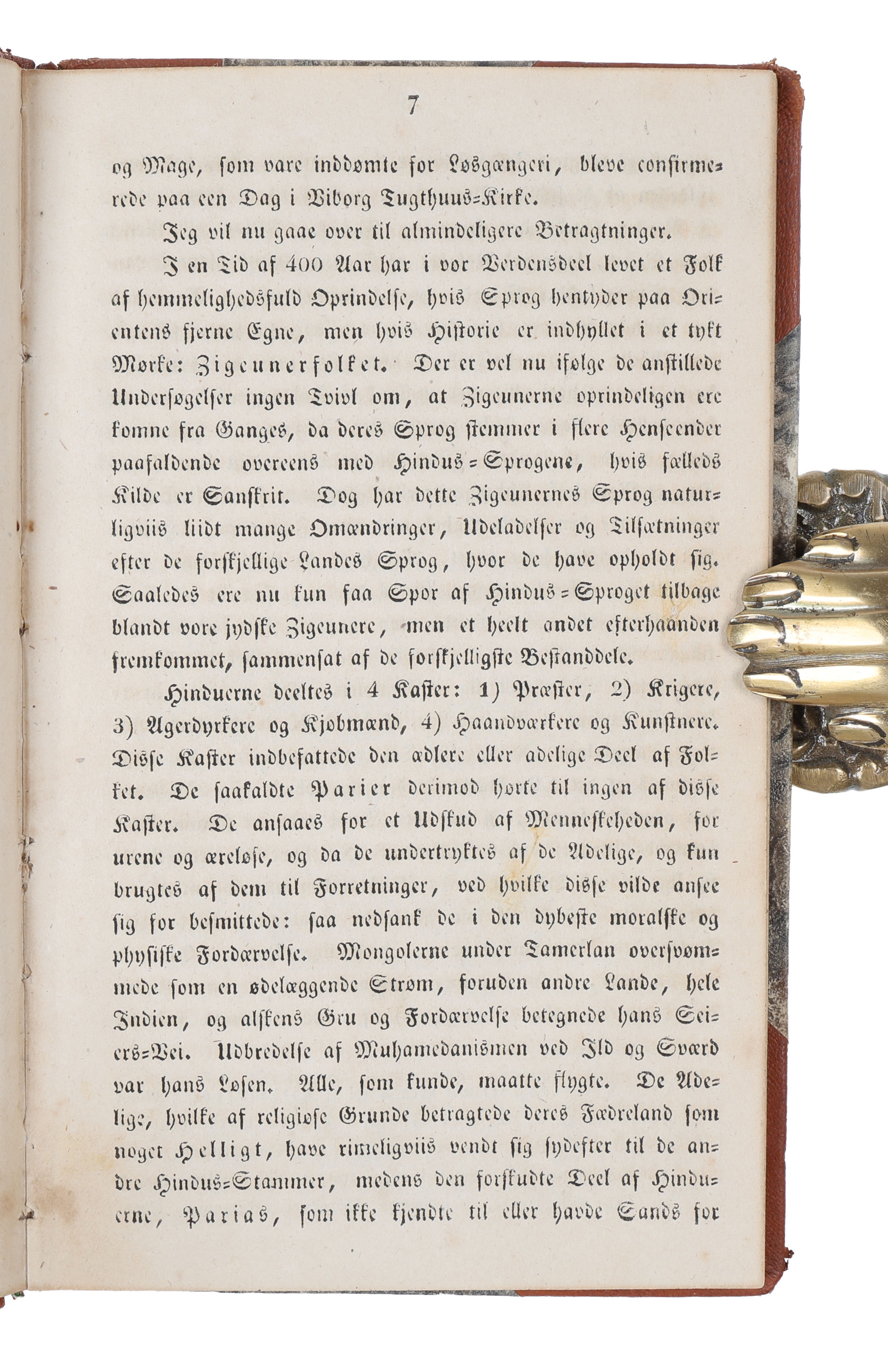 Kiøbenhavn, Gyldendal, 1837. 8vo. In contemporary half calf with gilt lettering to spine. Wear to spine and back board. Embossed stamp to title-page and stamp to last page. First and last leaf reinforced in margin, internally with occassional brownspotting. (2), 64 pp. The rare first edition of this dictionary distributed to police officers in Jutland to serve as an interrogation tool against “Rotvælsk” (Romanian-Romani) speaking individuals, with the aim of helping the authorities to understand and control the alleged “wild nature” of these groups.