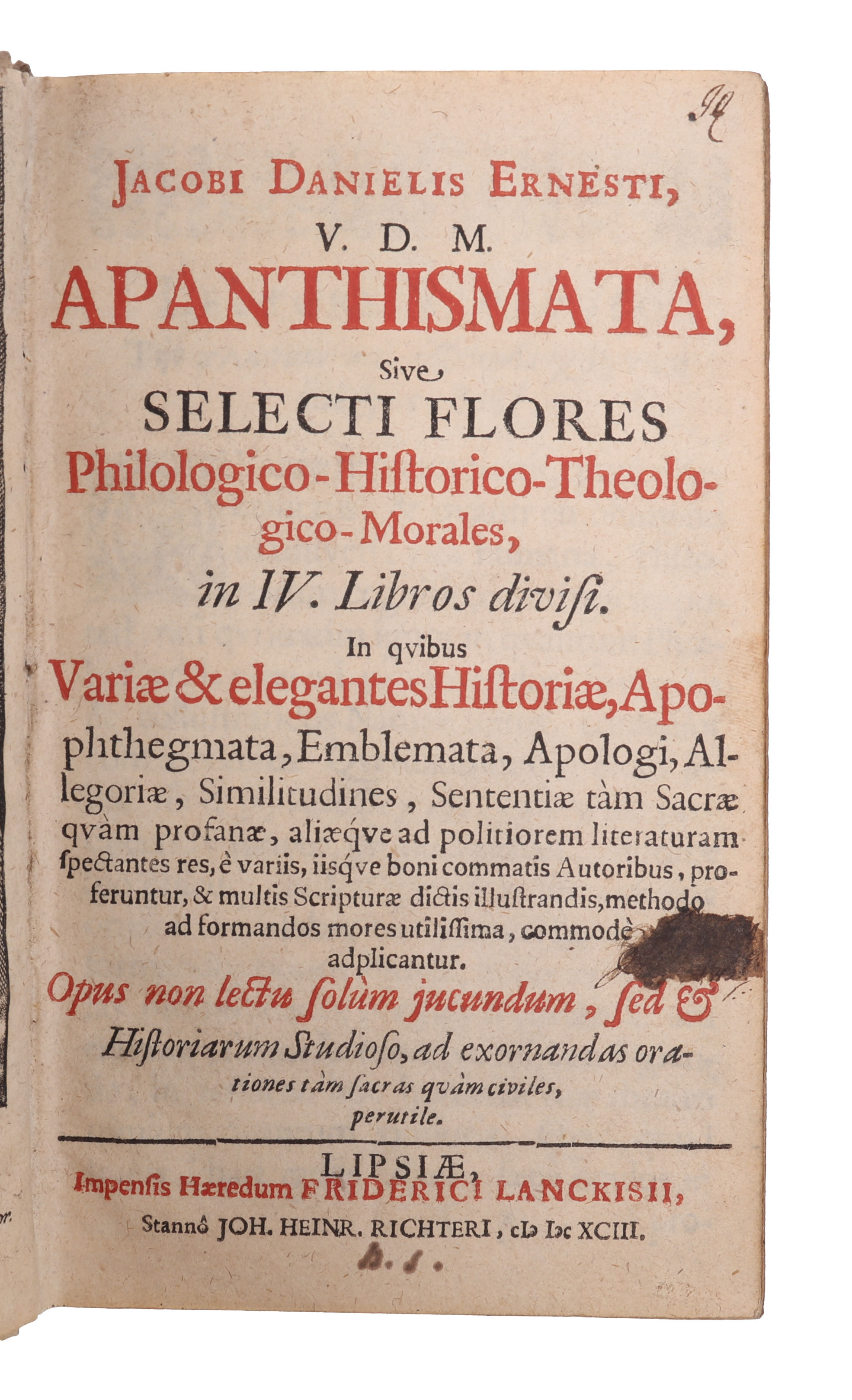 Apanthismata, sive Selecti Flores Philologico-Historico-Theologico-Morales, in IV Libros divisi.