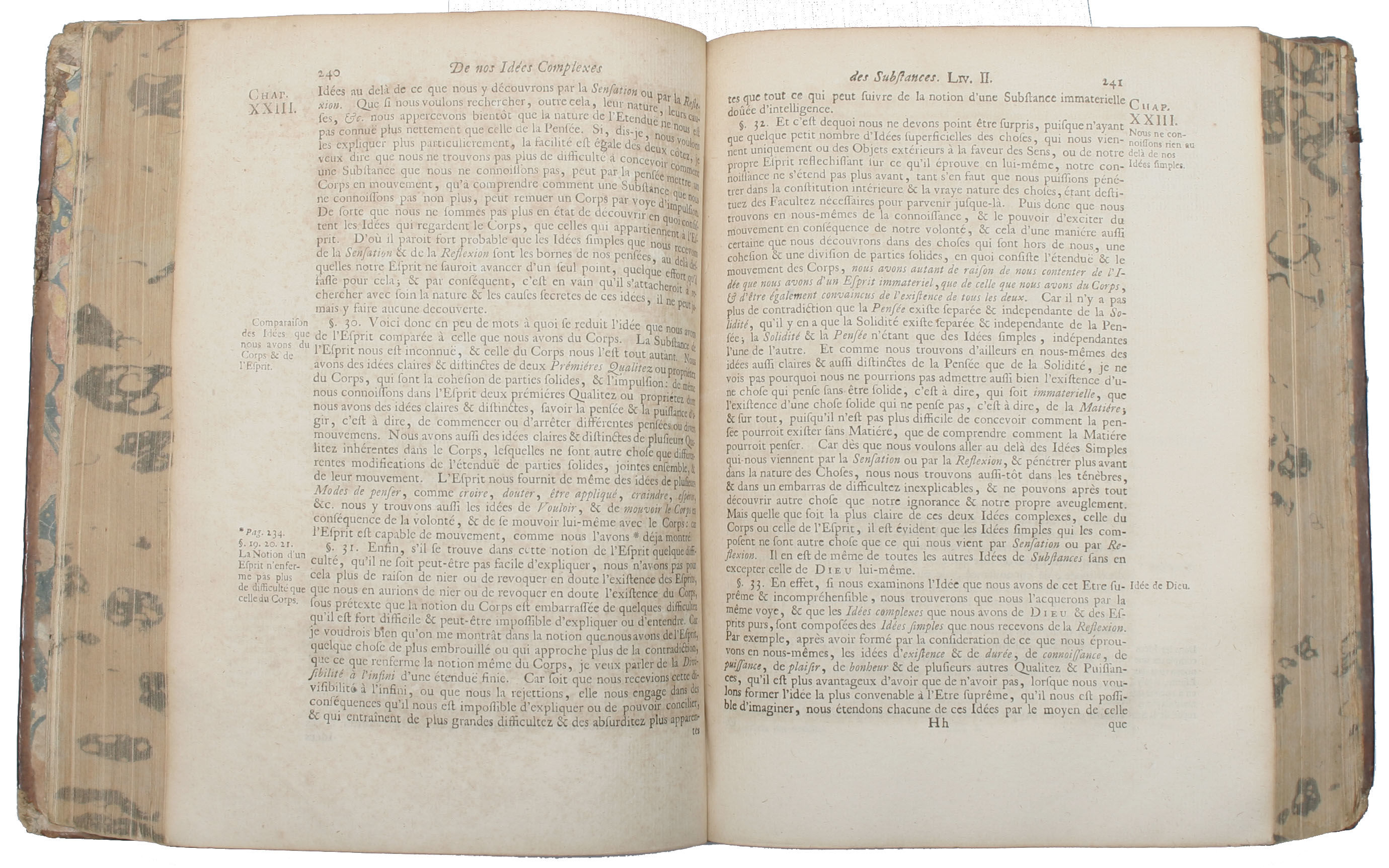 Essai Philosophique concernant L'Entendement Humain, ou l'on montre quelle est L'etendu de nos Connoissances certaines, et la Maniere don nous y parvenons. Trad.de L'Anglois par M.Coste. Sec.ed.revue, corrigée, & augmentée de quelque Additions ...