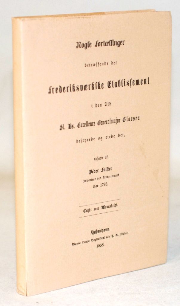 Nogle fortællinger betræffende det frederiksværkske etablissement i den tid Hs. Excellence Generalmajor Classen bestyrede og eiede det.