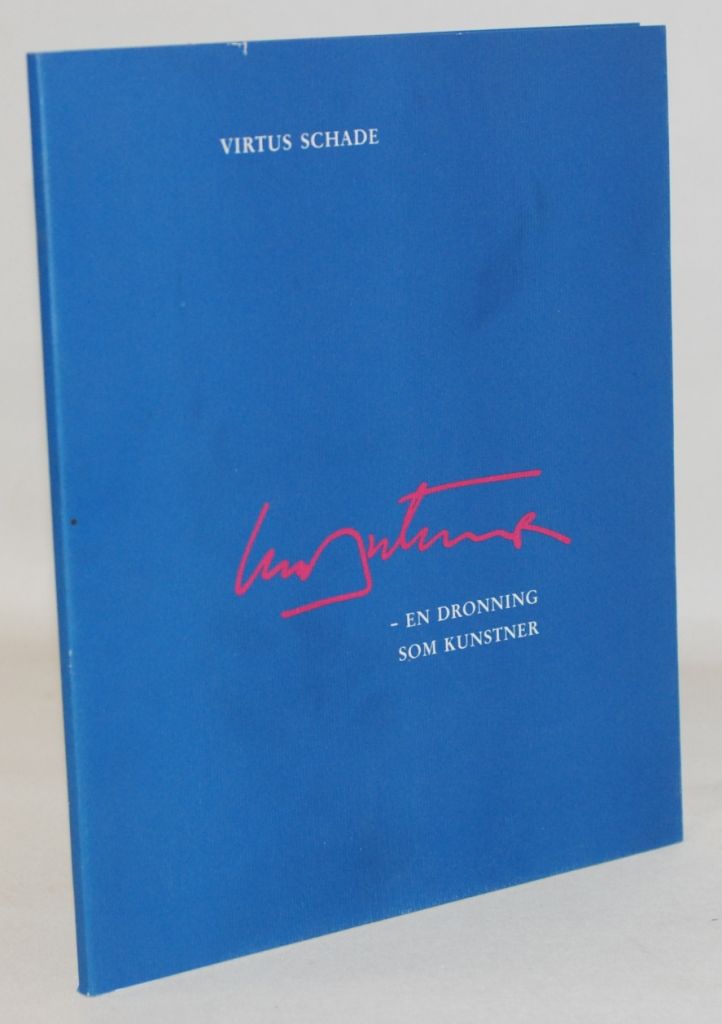 Fr. G. Knudtzons bogtrykkeri, 1988. 43 sider. Hæftet med smudsomslag. Pænt eksemplar. Illustreret i sort/hvid og farver. Gennemgang og tolkning af Margrethe II's mangeartede kunstværker: illustrationer, korsstingsmønstre, træsnit, tuschtegninger, akvareller, oliebilleder, messehageler og alterforhæng.. Dansk