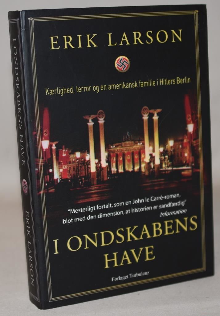 Turbulenz, 2012. 1. udgave. 1. oplag. 397 sider. Heftet med orig. omslag. Særdeles velholdt eksemplar. Historisk dokumentarisk portræt af Berlin 1933-37 med førstehåndsberetninger fra USA's ambassadør i Tyskland, William Dodd. I begyndelsen er han og hans seksuelt frisindede datter Martha betagede af nazismen, og Martha indleder et forhold til lederen af Gestapo, men da volden eskalerer bliver ambassadøren bekymret. Men Hitler har kun hån til overs for ham. Og i USA gider ingen høre på hans bekymringer. Dansk