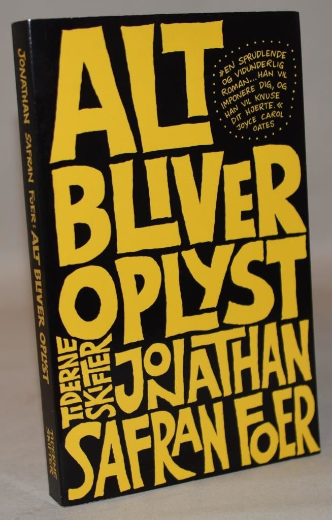 Tiderne Skifter, 2003. 319 sider. Heftet med orig. omslag. Særdeles velholdt eksemplar. Den ukrainske tolk Alex fortæller retrospektivt om amerikanske Jonathans rejse til Ukraine for at finde Augustine, som hjalp hans morfar under nazitiden. Med på turen er desuden Alex´s farfar og familiehunden Sammy Davis Junior Junior. Sideløbende fortælles historien om en familie i Trachimbrod.