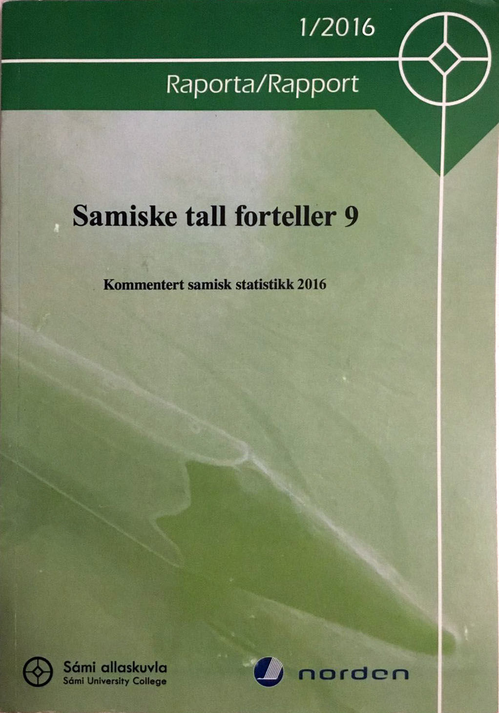 Alta 2016. Sámi allaskuvla. Stor 8vo. 180, 171 s. Tabellar og diagram. Hefta. Grønt omslag med svart ryggskrift. I god stand