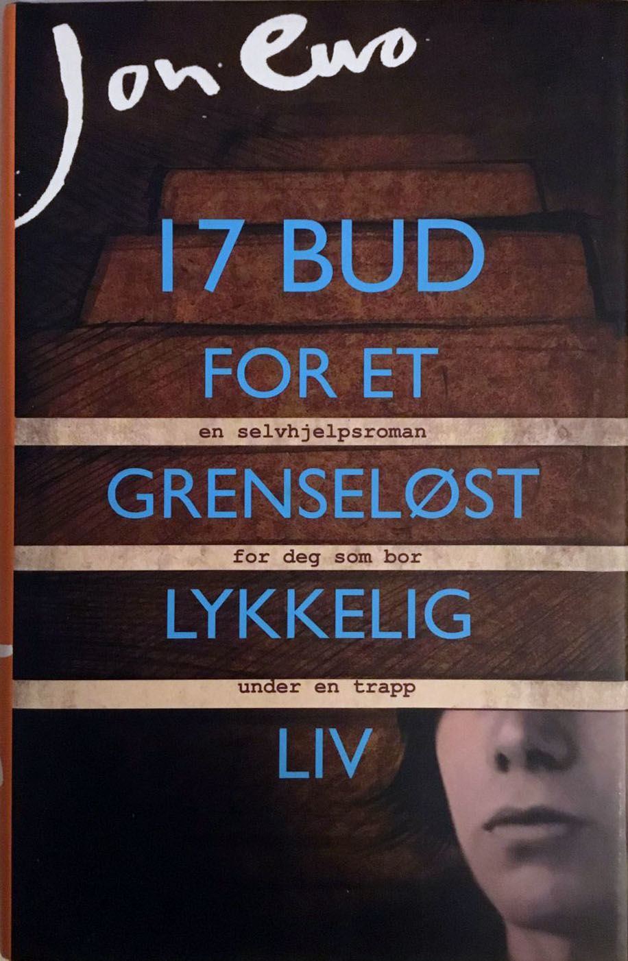 På framsida: ""17 bud for et grenseløst lykkelig liv, en selvhjelpsroman for deg som bor under en trapp""