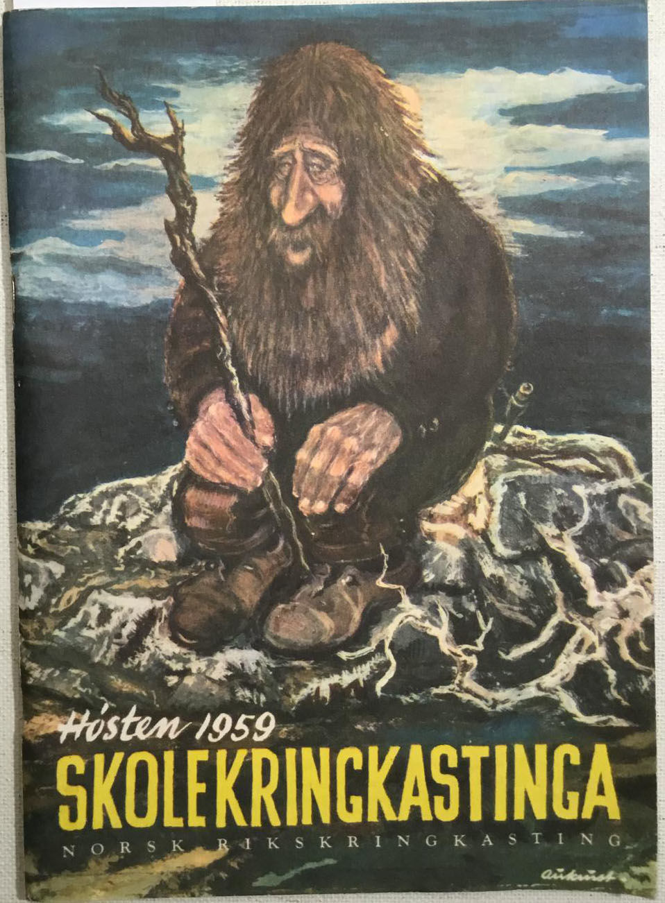 Oslo 1959. Norsk Rikskringkasting. 8vo. 79 (+1) s. Illustrert med kart, teikningar, foto og musikknotar. Stifta hefte od omslagsteikning av Kjell Aukrust. I god stans