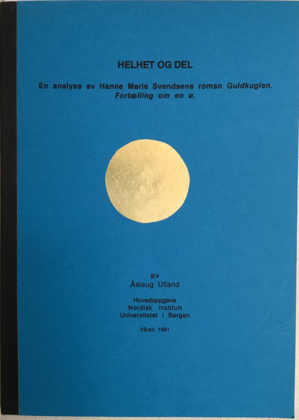 Åslaug Ulland: Helhet og del. En analyse av Hanne Marie Svendsens roman Guldkuglen. Fortelling om en ø. Hovedoppgave ved Nordisk institutt Universitetet i Bergen