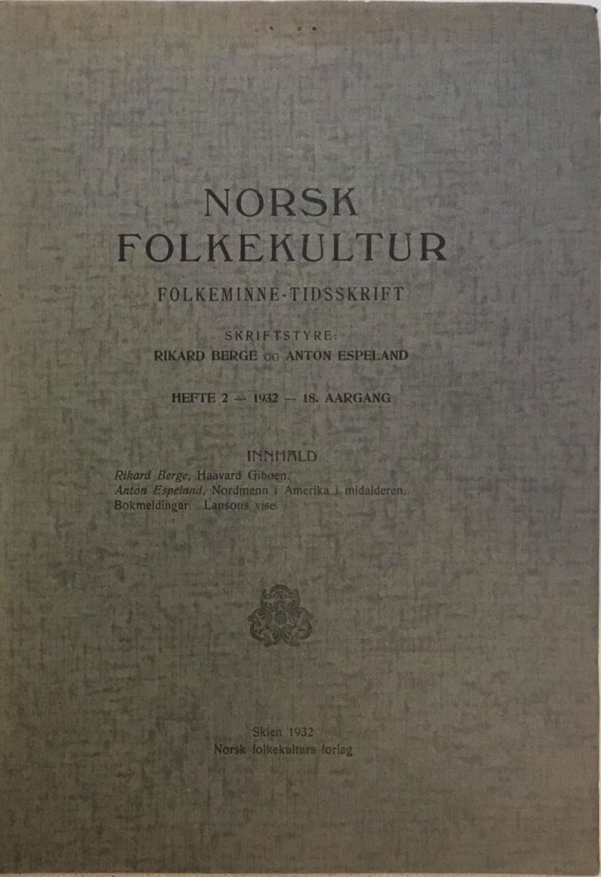 Folkeminne-Tidsskrift. Hefte 2 - 1932 - 18. årgang. Skriftstyre Rikard Berge og Anton Espeland