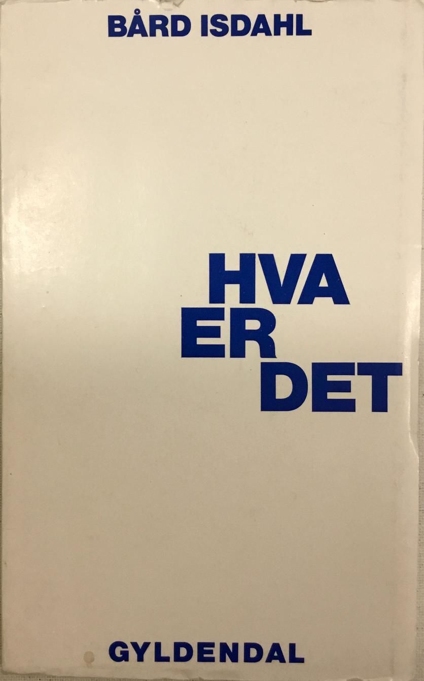 Debut! Bård Isdahl (f. 1946 i Bergen). Arkitekt og forfattar. Det skulle gå 23 år før han kom med den neste boka si: Romanane Jeg er timeglasset. Morandis rom, roman kom i 2000 og i 2013 Havari - en roman om luft