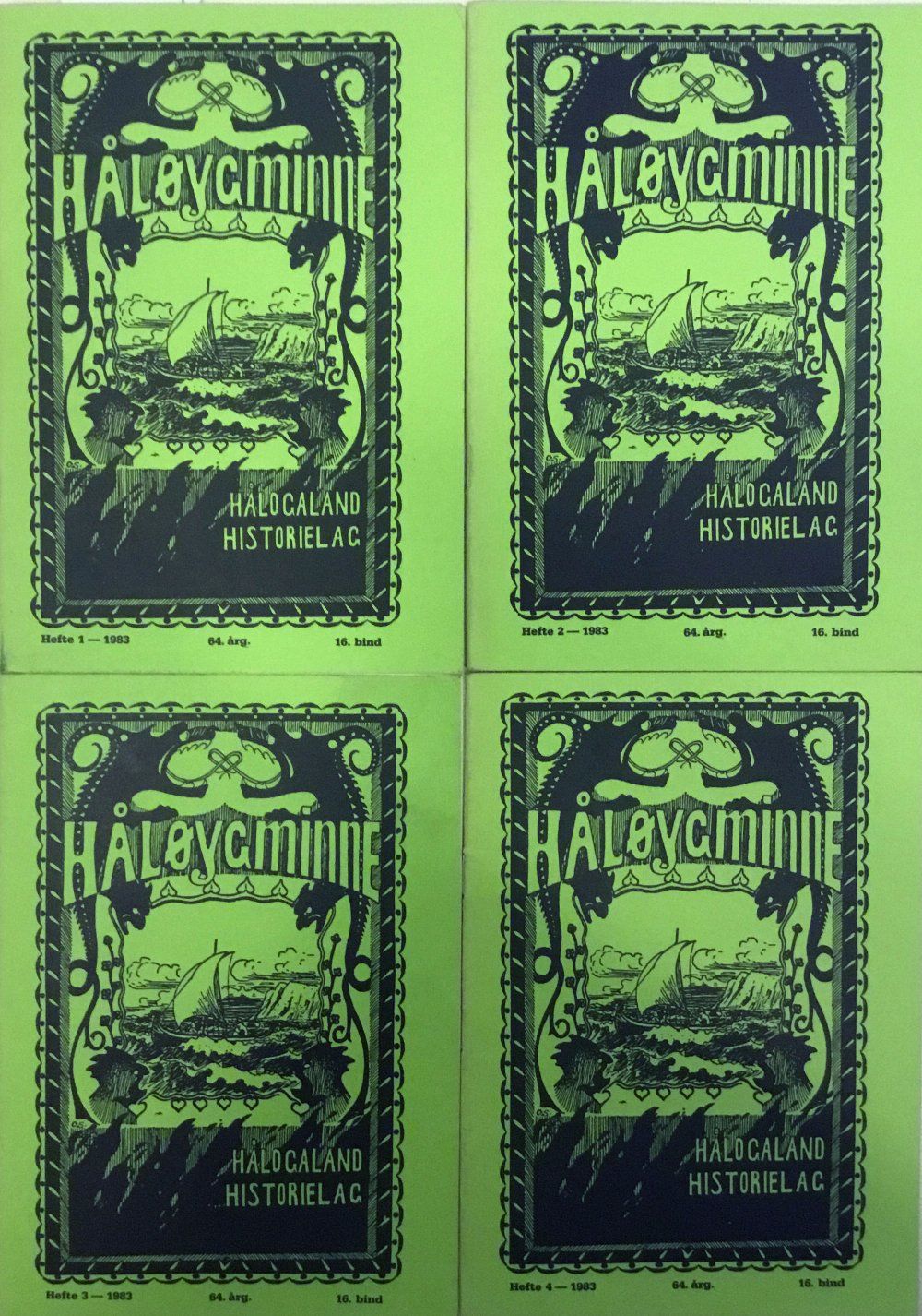 Trondenes 1983. Utgjeve av Hålogaland historielag. Komplett årgang. 4 hefte. 8vo. Pagina 265-396. Illustrert. Stifta hefte. Grøne omslag. Namneetikett bak på omslaga, elles eit pent sett. I plastomslag