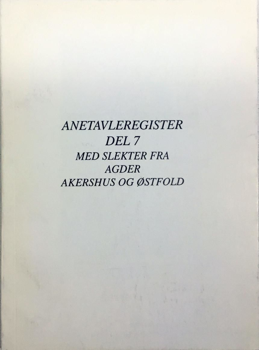 Anetavleregister. Del 7. Med slekter fra Agder, Akershus og Østfold