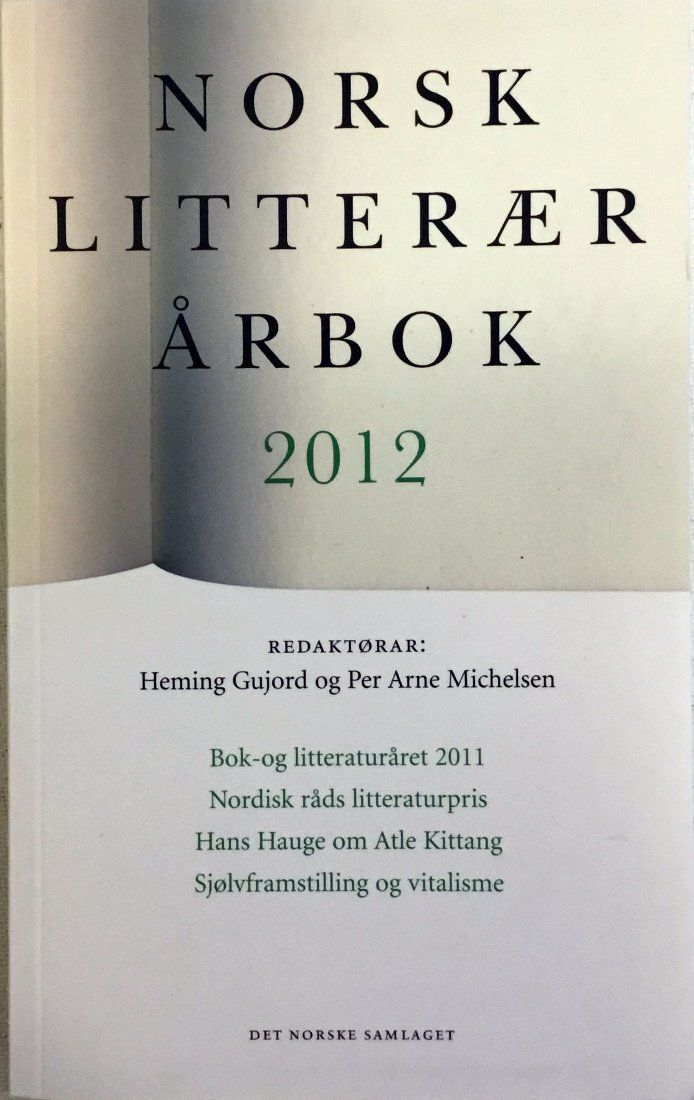 NLÅ 2012 oppsummerer det litterære fjoråret, og inneheld litteraturvitskaplege artiklar om ulike emne. Hans Hauge portretterer Atle Kittang, Nora Simonhjell tolkar vinnaren av Nordisk råds litteraturpris, og Eivind Tjønneland oppsummerer kritikkåret med eit spesielt blikk på Knausgård-resepsjonen