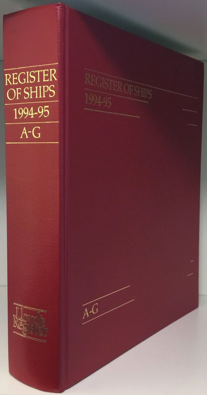 London 1994. Lloyd's Register of Shipping. 4to. 1690 s. Originalbind. Raud rygg med gyllen tekst. Eit skrap i kunstskinnet på framsida, elles pen