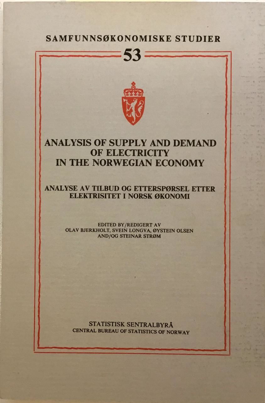 Samfunnsøkonomiske studier 53. Redigert av: Olav Bjerkholt, Svein Longva, Øystein Olsen, Steinar Strøm. Boka presenterer resultata frå eit større prosjekt ved Statistisk Sentralbyrå, retta mot å utvikla betre analysegrunnlag for energipolitiske spørsmål. Særleg har ho fokus på tilbod og etterspurnad etter elektrisitet i norsk økonomi, og tek opp problemstillingar knytt til langsiktig planlegging. Eit sentralt verktøy i arbeidet har vore vidareutviklinga av MSG-modellen, som blei tilpassa energistudiar og brukt i regjeringas langtidsprogram 1982–1985. Studien inkluderer også analysar av prisdanning, kostnadsstruktur og usikkerheit i kraftforsyninga