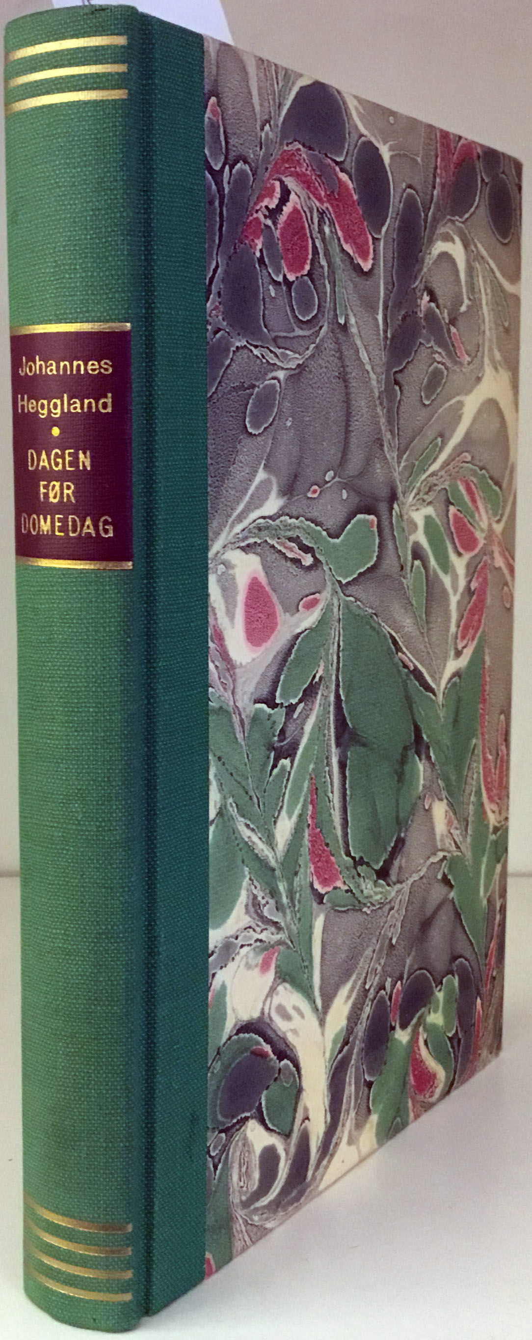Oslo 1961. 1. utg. Gyldendal. 8vo. 228 s. Originalt ryggsjirtingsryggbind. Grøn med gylne striper øvst og nedst og gyllen ryggskrift på raudt felt. Pen