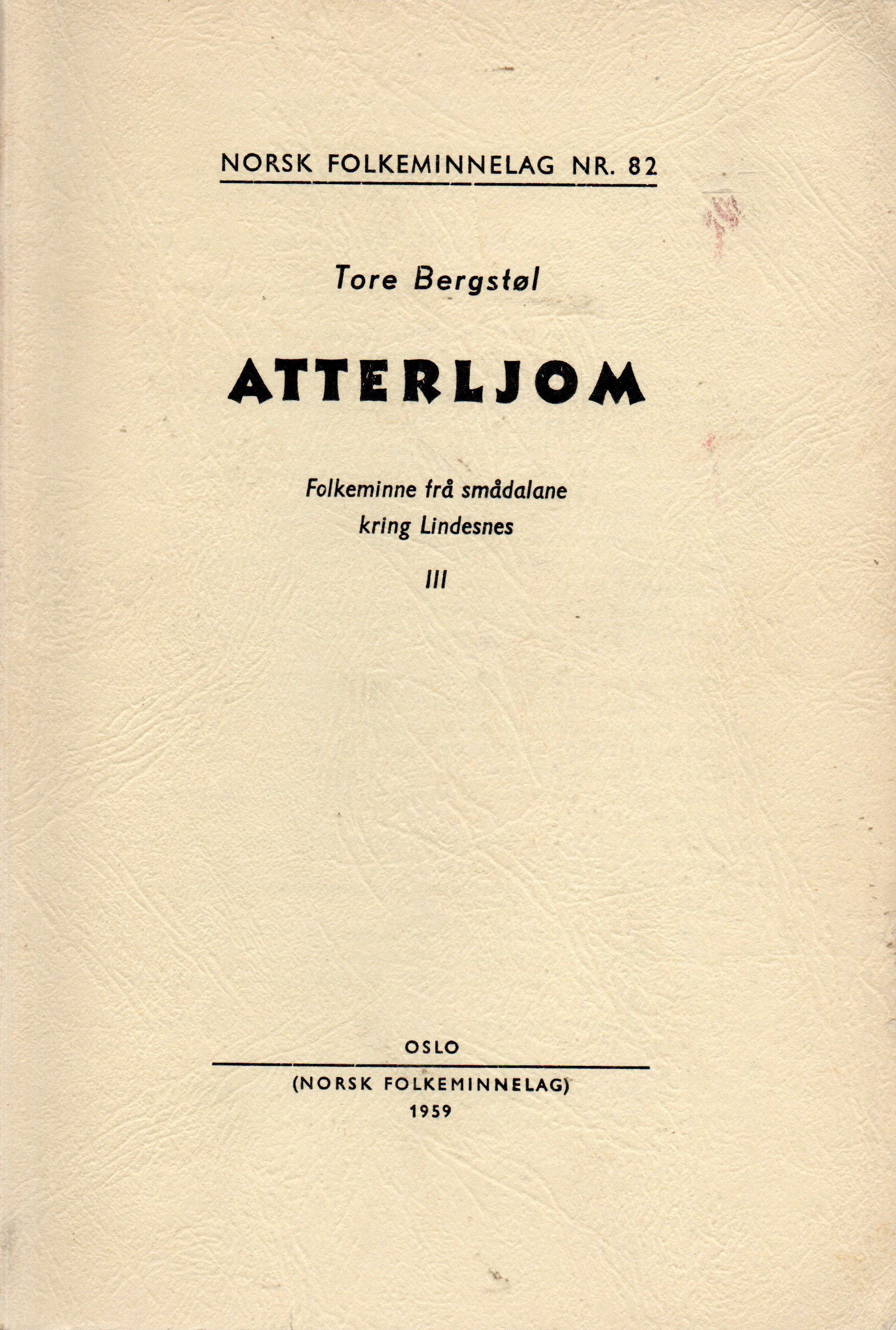Oslo (Norsk Folkeminnelag) 1959. 160 s. 8vo Originalt omslag Navnetrekk i tittelbladet