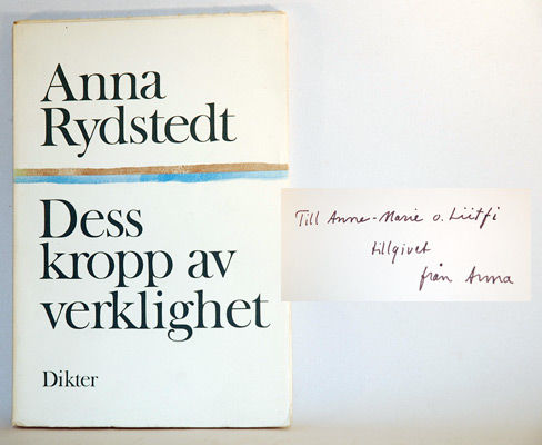 Stockholm; Bonniers, 1976. Originalupplaga. [24x16,5 cm]. 86, (4, 2 blanka) s. Häftad. Omslag av Andrea Ydring. Ett par små riss längst ned på bakre omslag, annars ett fint ex. Dedikation: ""Till Anne-Marie o. Lütfi [Özkök] / tillgivet från Anna"".