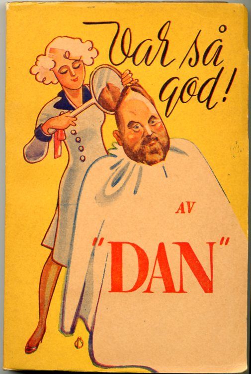 Stockholm; AB Lindqvists förlag, 1945. [Andra upplagan]. 19,5x13 cm. 143, (1 blank) s. Häftad med illustrerat omslag. Mestadels ouppskuren. Med Silluf och Bengt-Olof Landins exlibris. Svaga skrynklor på ryggen. Omslaget med lätt veckade yttermarginaler. Utgavs första gången 1928. Bergman (1869-1932) var medarbetare i Strix, DN och Aftonbladet, redaktör för Kurre 1907-12, medredaktör för Veckojournalen och Allt för alla. J. Viktor Johansson karakteriserar hans skrifter i Svenskt biografiskt lexikon: ""B[ergman] eller »Dan», under vilken signatur han är mest känd, rör sig helst i borgerlig miljö och skildrar med livlig komisk fantasi och aldrig svikande jargong vardagslivets öden och missöden, i synnerhet de sistnämnda. Höjdpunkten markeras ofta av krossat porslin, exploderande ölbuteljer o. d. Författaren uppträder gärna själv i sina historier — i clownens roll.""