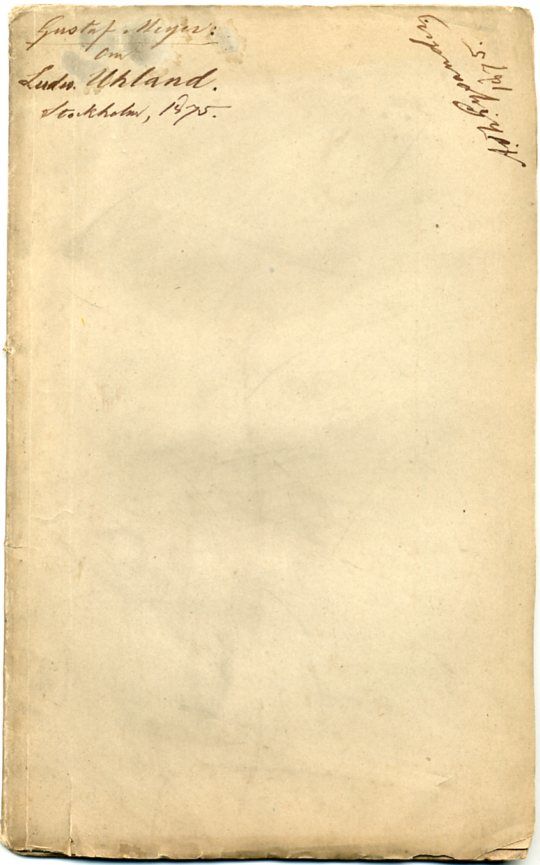 Stockholm; tryckt hos A. L. Normans Boktryckeri-Aktiebolag, 1875. Diss. 22,5x14 cm. (2, 2 blanka), 36 s. Häftad med samtida blankt omslag. Främre omslag med handskriven titel samt Albert Lysanders namnteckning. Omslaget solkat, något nött och med två revor framtill. Litet hål i nedre marginalen på s. 5/6. Ett fåtal sidor lätt fläckade.