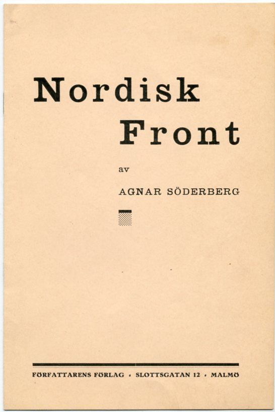 Malmö; Författarens förlag, 1936. 21,5x14,5 cm. 8 s. Klammerhäftad med tryckt omslag. En svag fläck på främre omslag. Rygghuvudet med en liten skrynkla. Fint ex. Författaren vill se ett starkt skandinaviskt försvar som ska kunna stå emot den tyska expansionen.