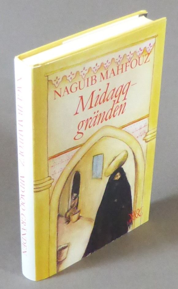 Stockholm; Rabén & Sjögren, 1981. Originalets titel: Zuqaqu-l-Midaqq (1980). 21,5x14,5 cm. 242 s. Förlagets pappband med tryckt skyddsomslag. Aningen snedläst. Ryggändar samt bakre övre pärmhörn lätt tilltryckta. Främre försättsblad delvis mörknat av ilagt tidningsurklipp (Sigrid Kahle om Mahfouz's nobelpris). Bra ex. Med kritikern och översättaren Madeleine Gustafssons namnteckning på främre försättsblad. Första svenska utgåvan. Publisher's boards with pictorial dustjacket. Spine is slightly out of square. Spine ends and rear top corner are a little bumped. Front free endpaper is partly yellowed from laid-in newspaper cutting. With the signature of Swedish literary critic and translator Madeleine Gustafsson on front free endpaper. First Swedish edition of ""Zuqaqu-l-Midaqq"".