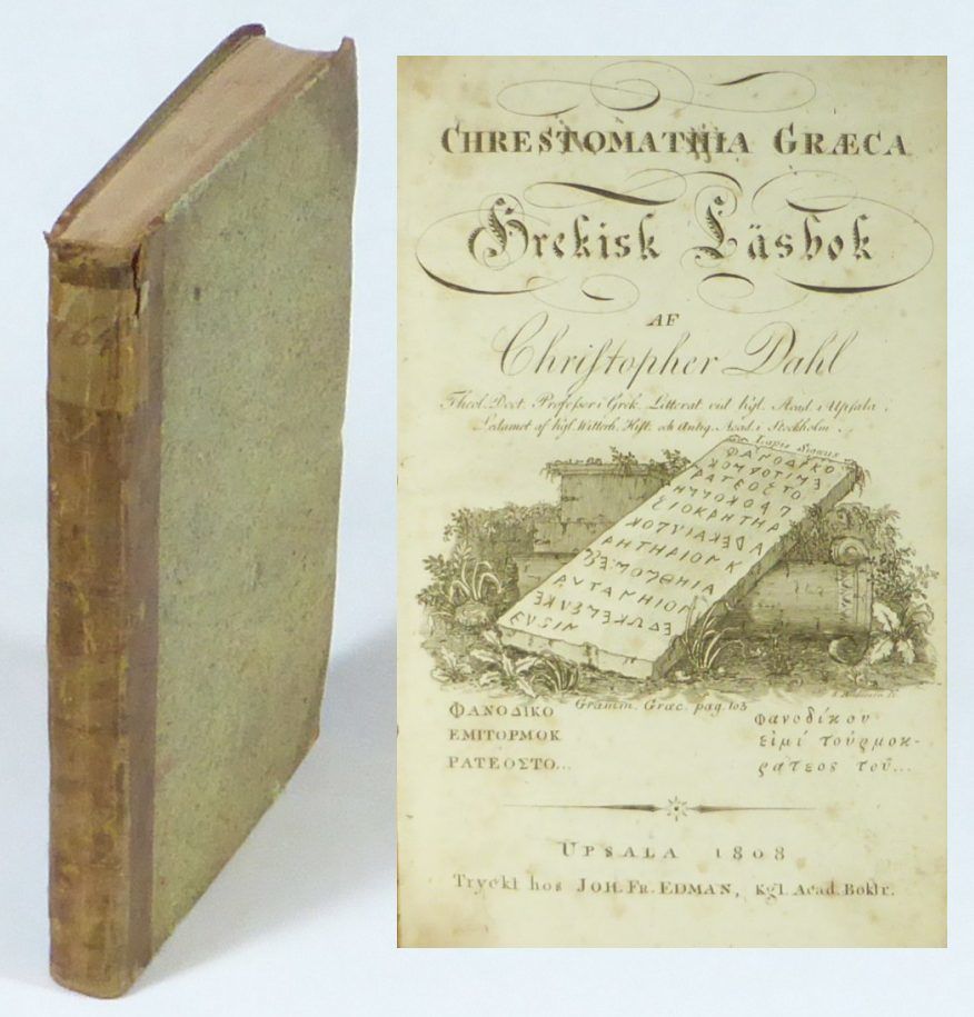 Uppsala; tryckt hos Joh. Fr. Edman, 1808. 8:o. 18x11,5 cm. Graverat titelblad, (8), 248 s. Samtida halvfranskt band med marmorerade pärmpapper. En trasig pappersetikett på ryggen med handskriven biblioteksnumrering. Ryggen ganska nött, särskilt rygghuvudet, kort reva i övre framfals. Pärmhörnen lätt tilltryckta och nötta. Namnteckning på främre innerpärm (Matilda Gerle). Liten nagg i yttermarginalen på s. 109-112. Inlagan med ett fåtal spridda småfläckar.