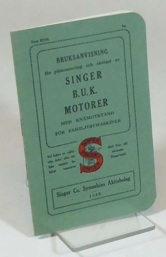 Utan ort; Singer Co. Symaskins Aktiebolag, 1930. 14x9 cm. 19, (1 blank) s. Illustrerad. Klammerhäftad med tryckt omslag. Fint ex.