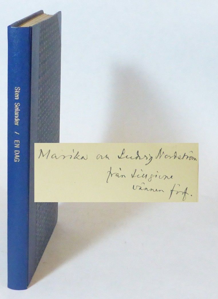 Stockholm; Bonniers, 1931. Originalupplaga. 24x16,5 cm. 131, (1) s. Blått halvklotband med förgylld ryggtitel och dekorerade pärmpapper (Becker & Svanberg, Växjö). Omslaget medbundet. Ett par svaga röda pennstreck på främre omslaget. Med en dedikation från författaren: ""Marika och Ludvig Nordström / från tillgivne / vännen förf."".