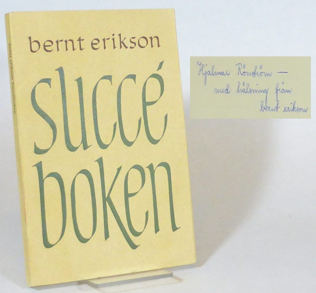 Stockholm; Tidens Förlag, 1959. Originalupplaga. 19,5x13 cm. 102, (1, 1 blank) s. Häftad med tryckt vikomslag. Ett par röda pennstreck på ryggen. Fint ex. Dedikation: ""Hjalmar Rönström -- med hälsning från bernt erikson"".