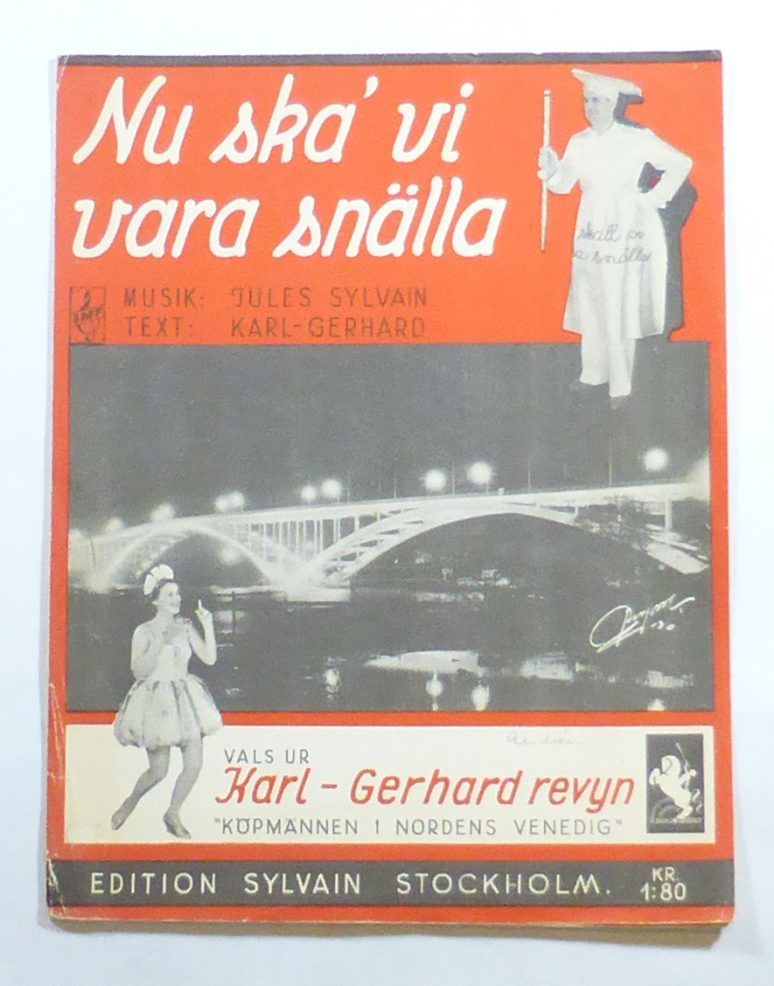 Nu ska' vi vara snälla. Vals ur Karl-Gerhardrevyn ""Köpmännen i Nordens Venedig"". Musik: Jules Sylvain. Text: Karl-Gerhard.