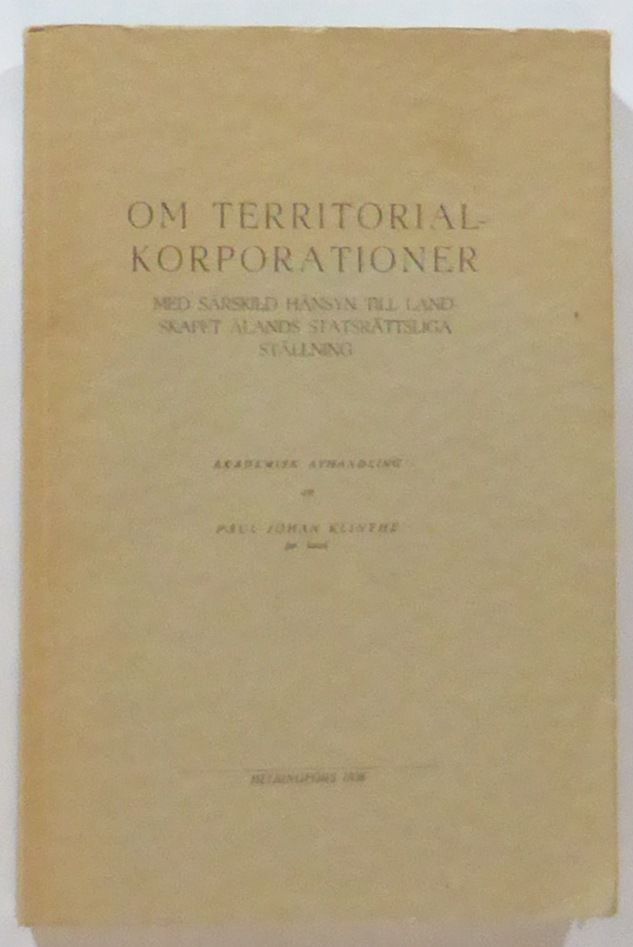 Om territorialkorporationer, med särskild hänsyn till landskapet Ålands statsrättsliga ställning.