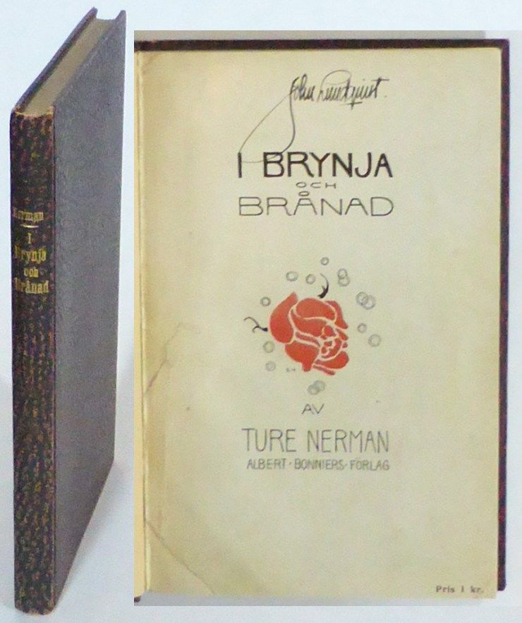 Stockholm; Bonniers, 1913. Originalupplaga. 18,5x12,5 cm. 119, (2, 1 blank) s. Samtida klotband i rött och svart, förgylld ryggtitel. Främre omslaget medbundet. Omslag av Einar Nerman. Omslaget med två lagade revor samt namnteckning (John Lundquist). Inlagan med ett fåtal spridda småfläckar. Bra ex. Proveniens: författaren Erik Lundberg (1923-2012).